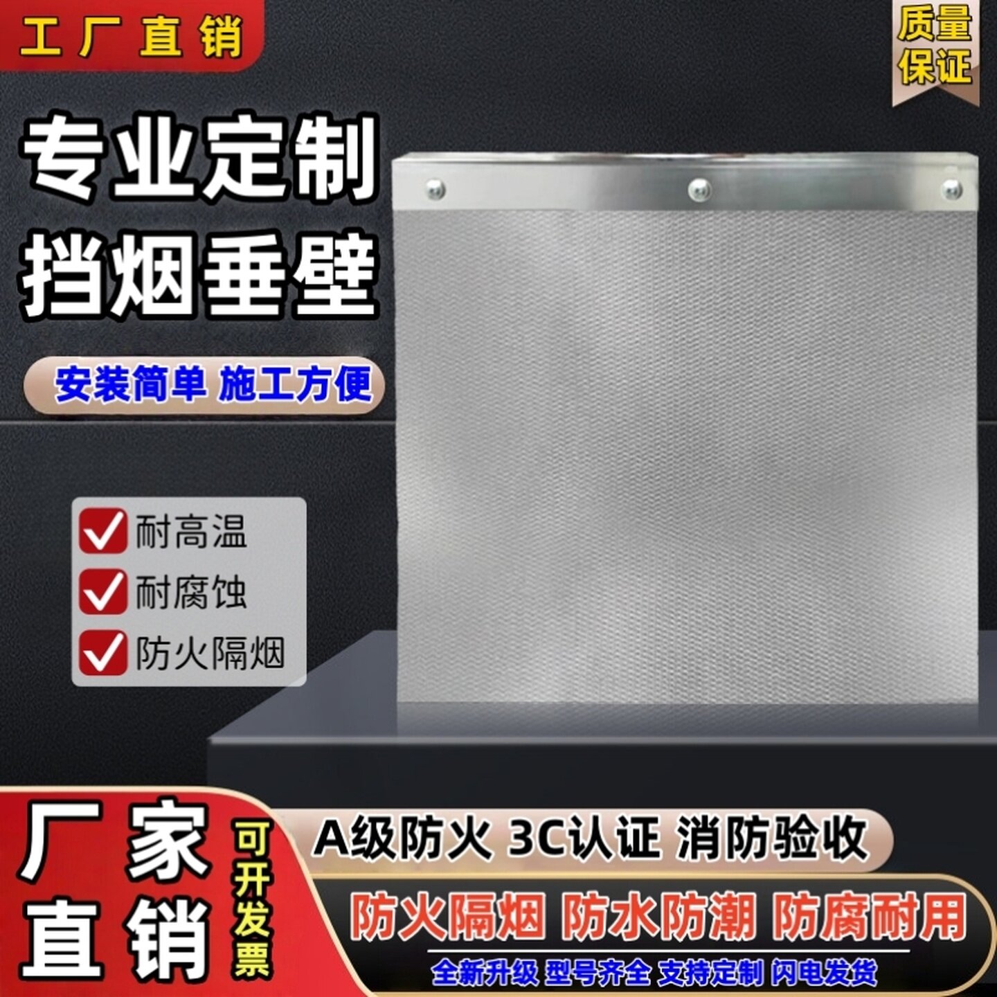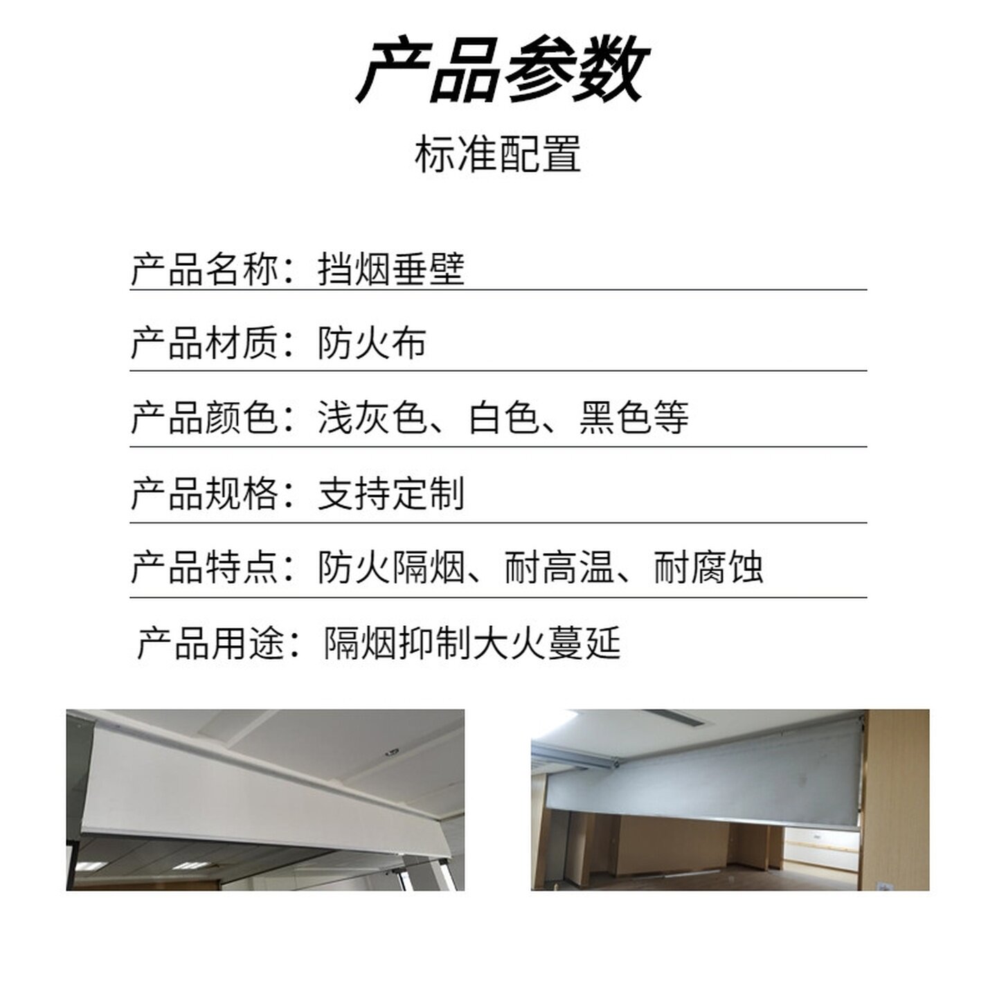 固定式挡烟垂壁消防硅胶防火布电动活动式防火玻璃挡烟垂壁配件