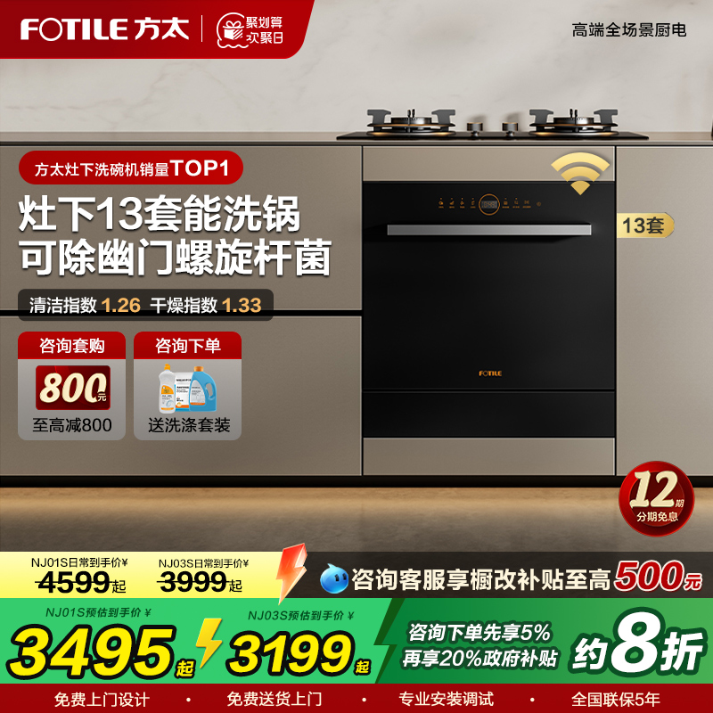 方太洗碗机嵌入式全自动家用小型NJ01S灶下13套消毒柜一体旗舰店
