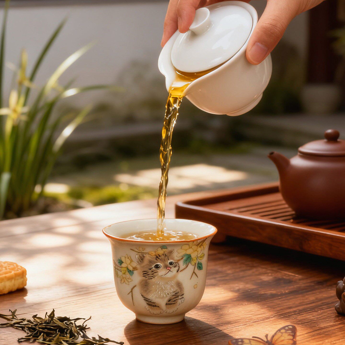 JOJO'S L. PD.justice.汝窑萌猫茶杯单杯家用茶盏品茗杯 | 见义