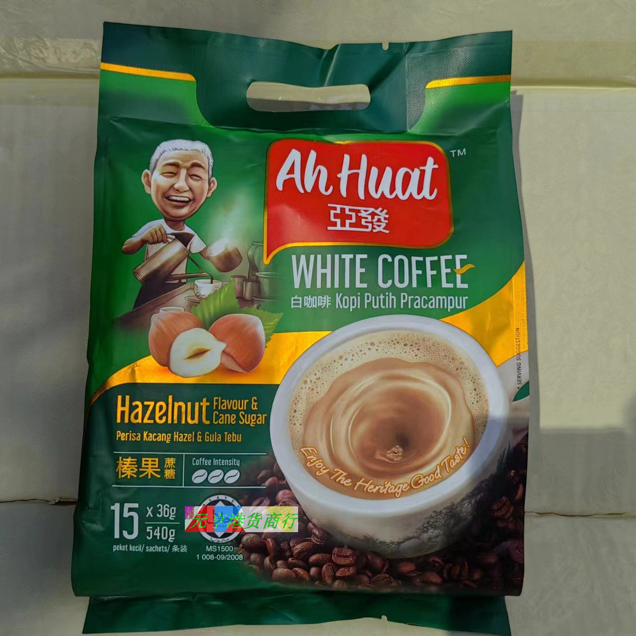 香港购马来西亚进口亚发榛果蔗糖香滑特浓炭烧3合1速溶白咖啡