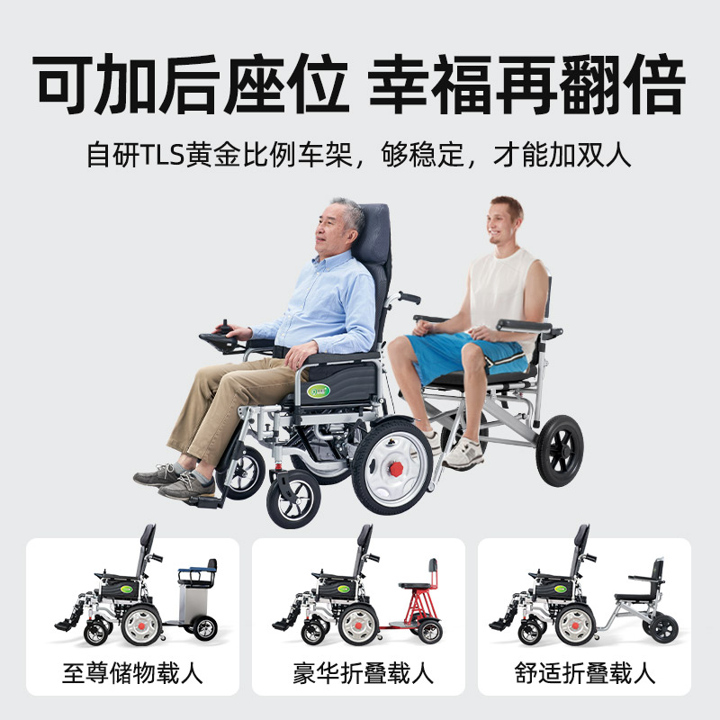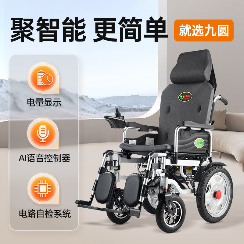 九圆电动轮椅车折叠轻便智能全自动残疾人老年人专用可躺代步神器