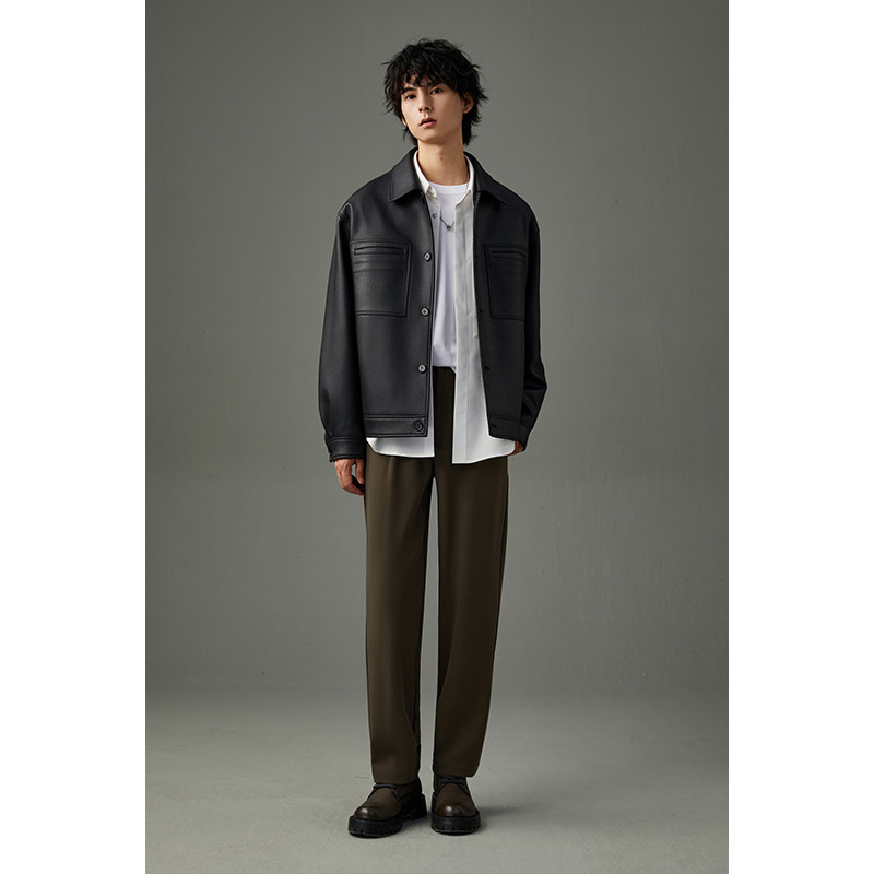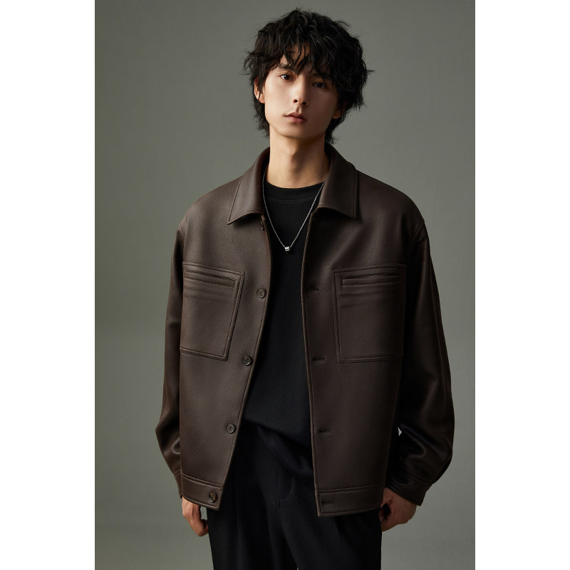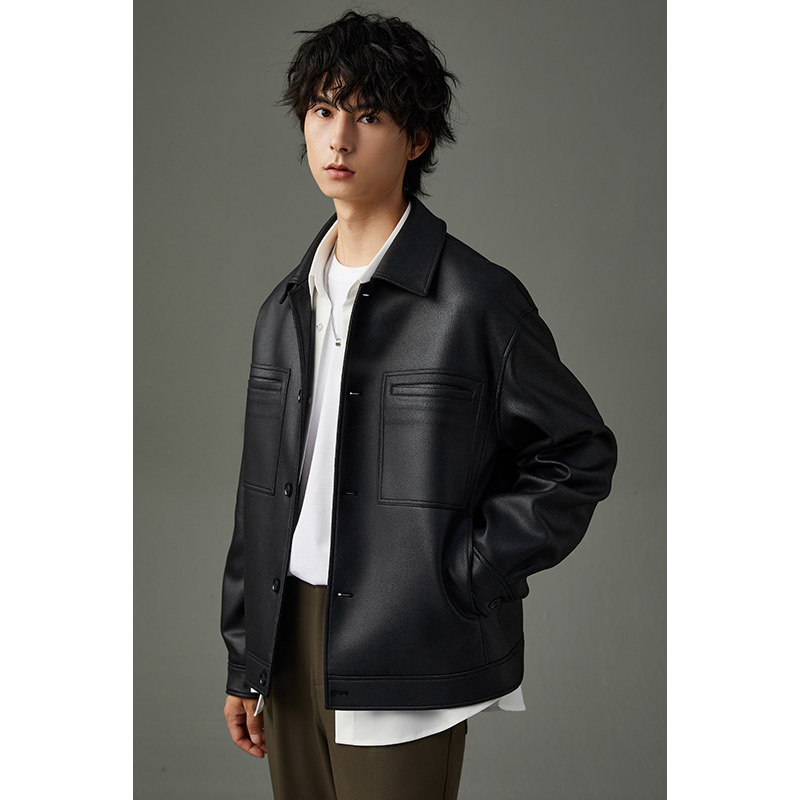 重磅美式复古皮衣男春秋季痞帅休闲PU夹克机车高级感上衣男士外套