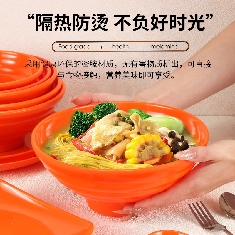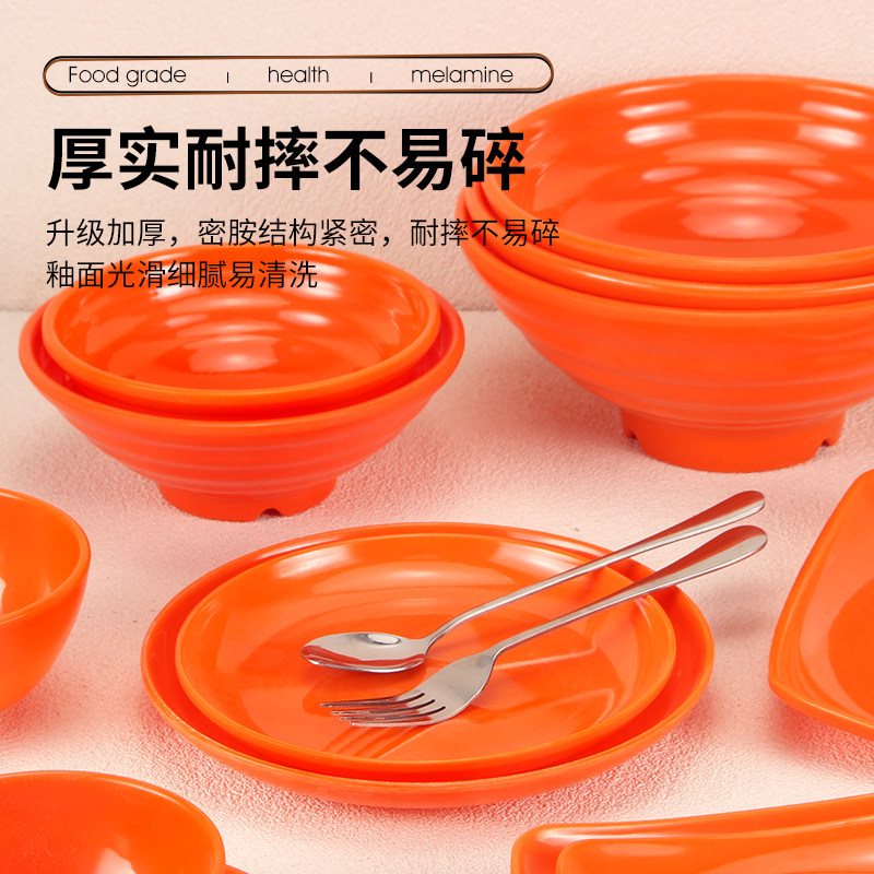 橙色密胺餐具自助餐盘商用面碗面馆专用圆盘口杯小碗勺子凉菜碟子