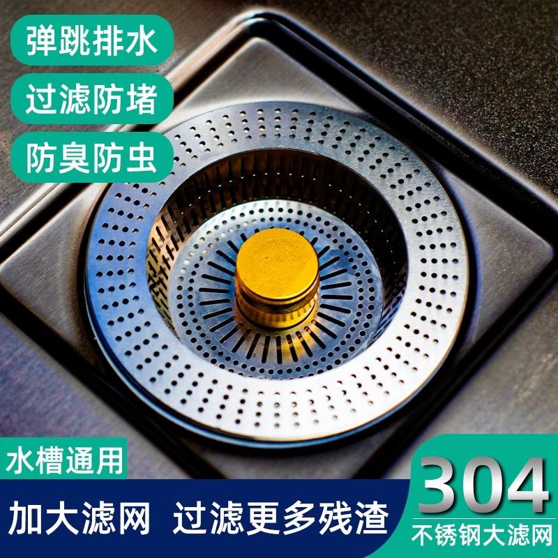 洗菜池不锈钢厨房洗菜盆水槽过滤网水槽通用洗碗池弹跳芯下水器