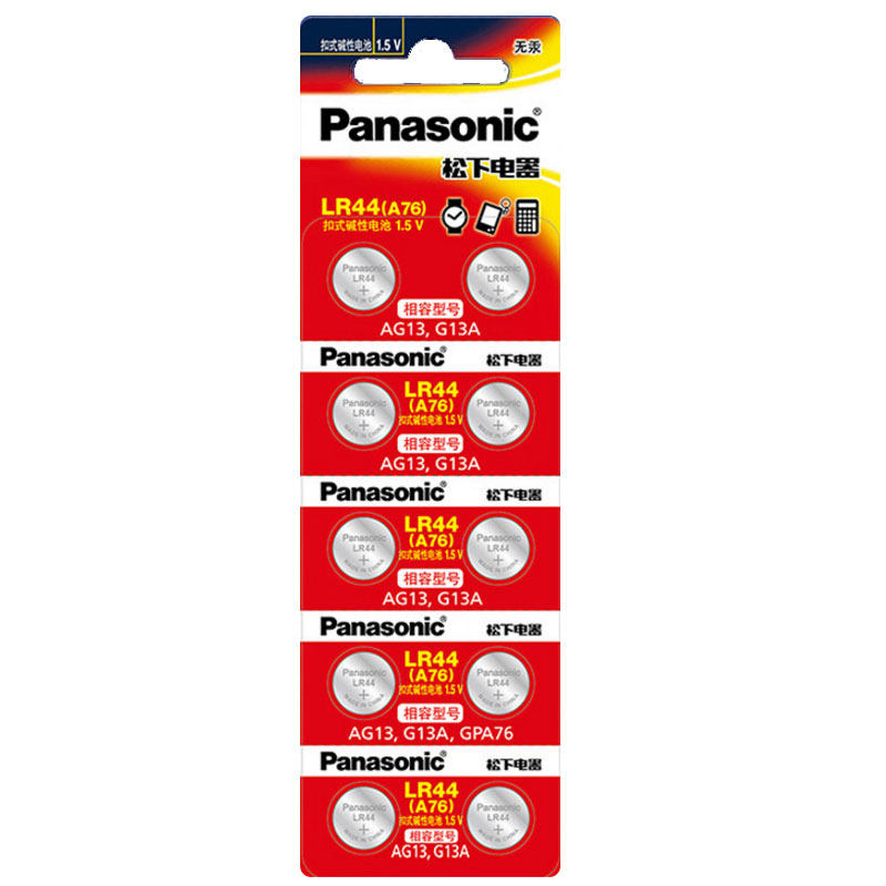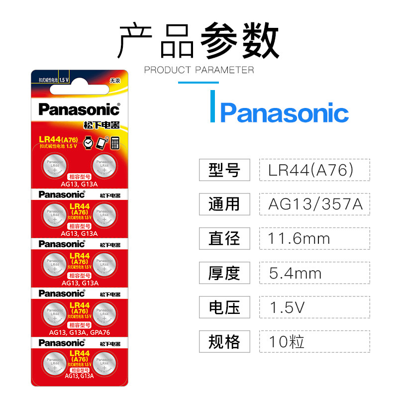 松下LR44纽扣电池AG13 L1154 A76 357a 通用SR44钮扣电子手表玩具遥控器游标卡尺扣式碱性小电池10粒批发1.5V