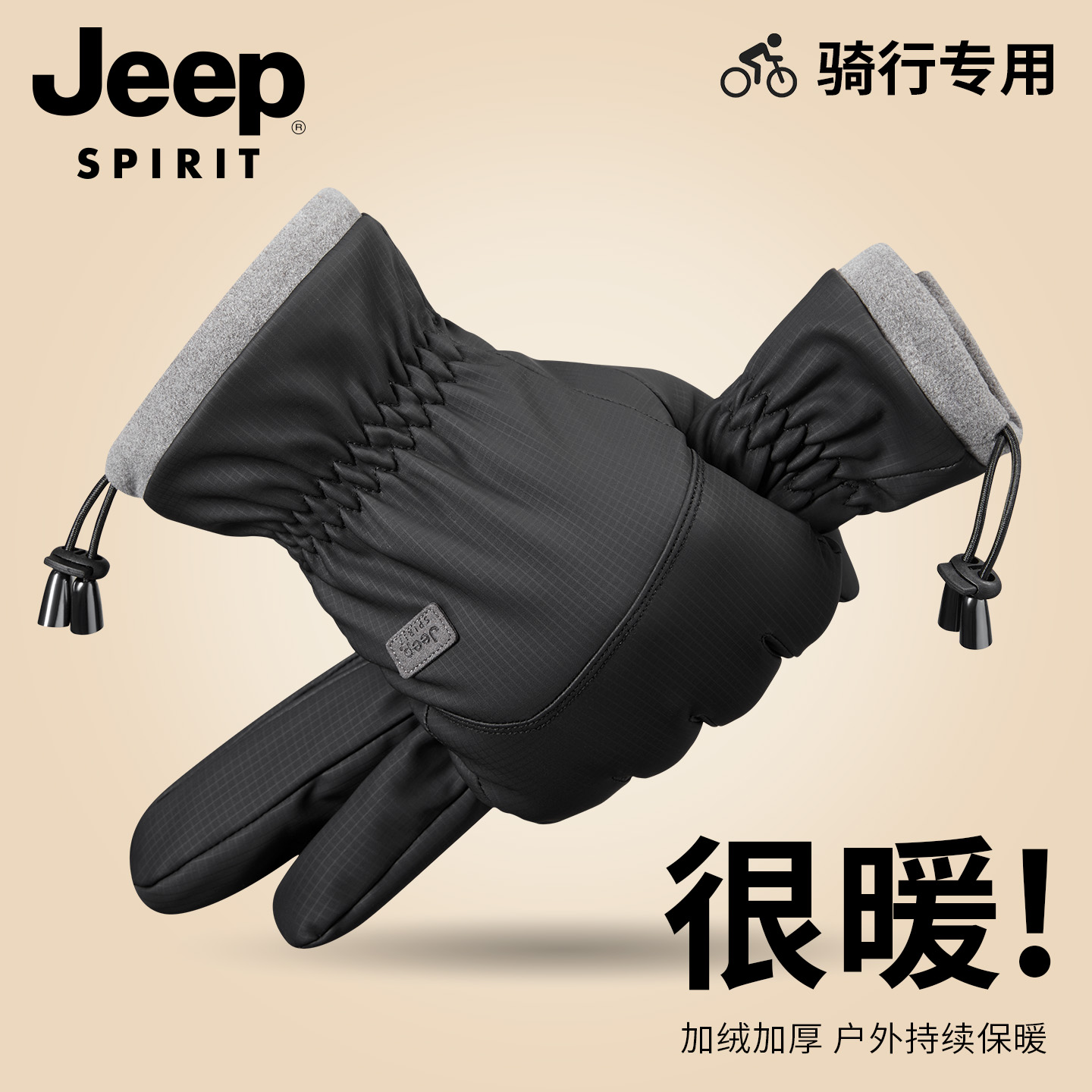 JEEP SPIRIT吉普男手套保暖冬季摩托车防寒防水骑行滑雪男士手套
