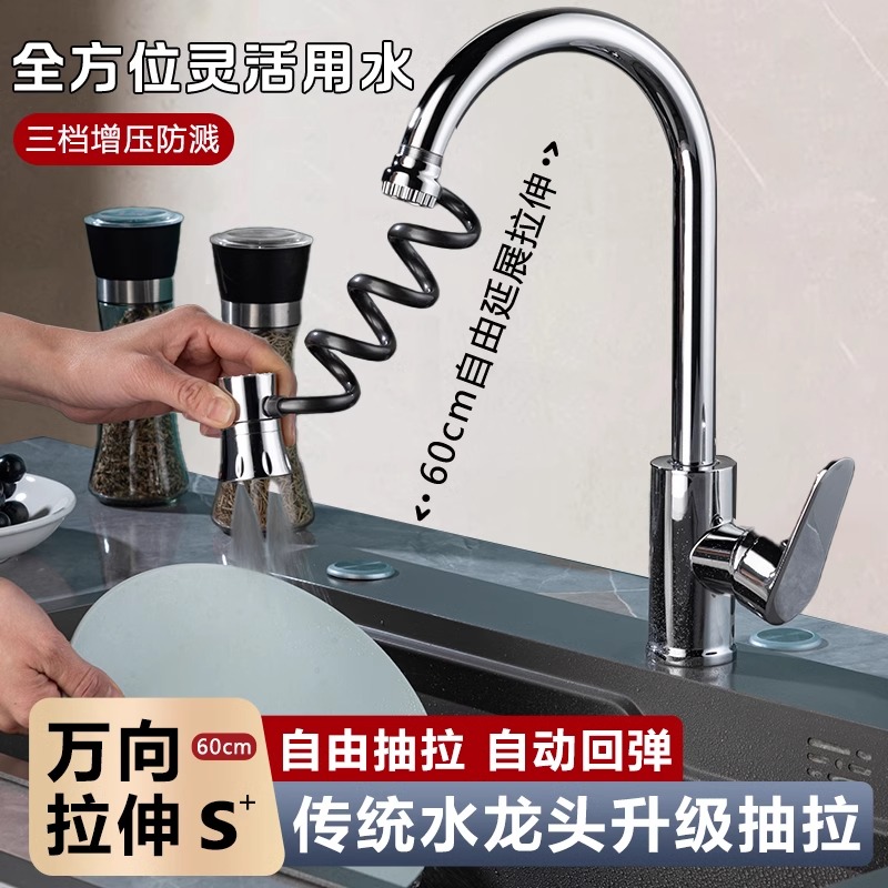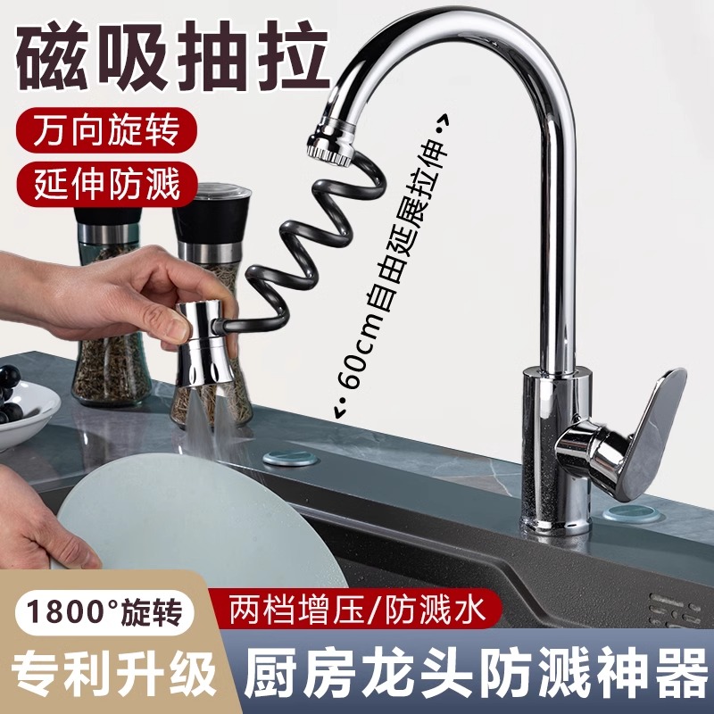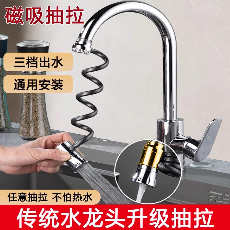外置式磁吸抽拉水嘴厨房卫生间水龙头延伸器多功能增压水咀起泡器
