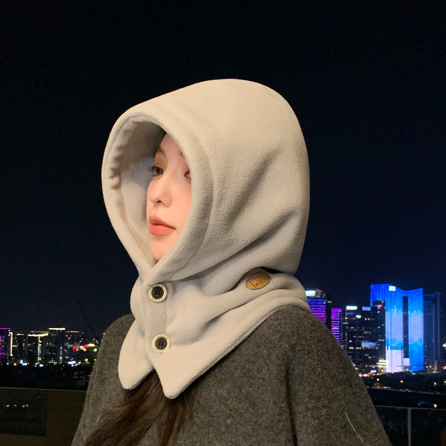 巴拉克拉法帽子女秋冬保暖围脖一体纽扣套头帽摇粒绒骑行保暖帽子