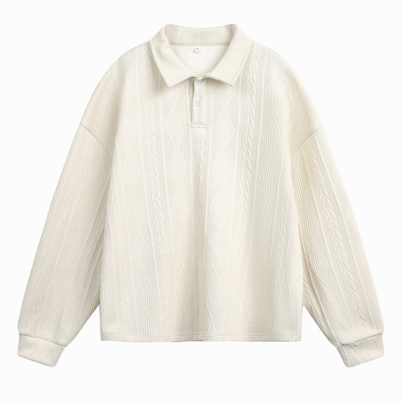 悟空有货麦穗纹肌理感纯色上衣POLO衫男复古宽松百搭情侣翻领卫衣