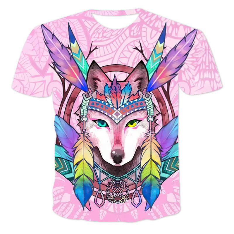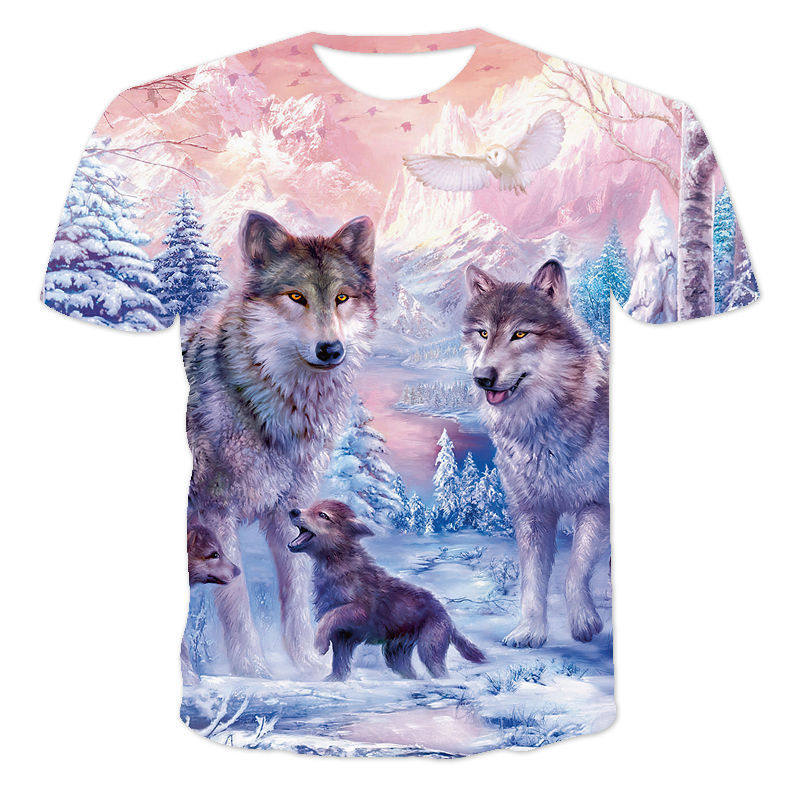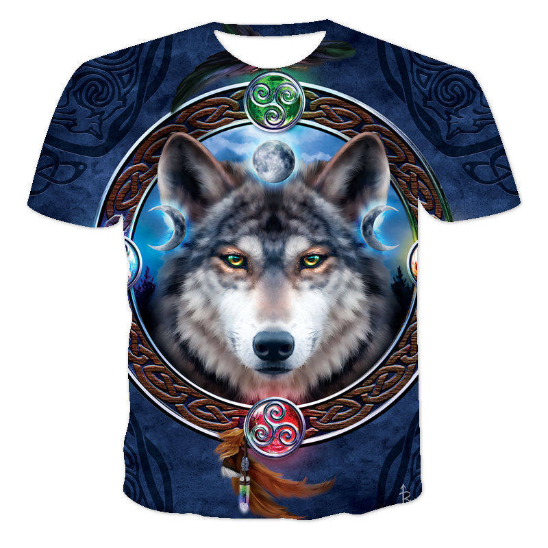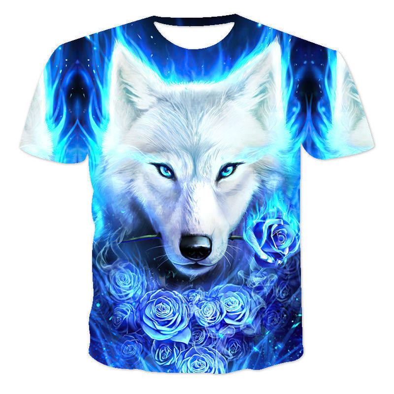 Cool Wolf King 3D Printing Men's T-Shirt炫 酷狼王3D印花男T恤