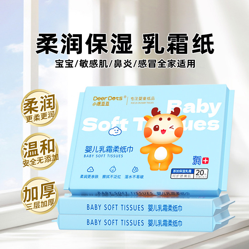 小鹿豆豆婴幼儿乳霜纸5包升级装云柔亲肤擦拭不易泛红宝宝专用纸