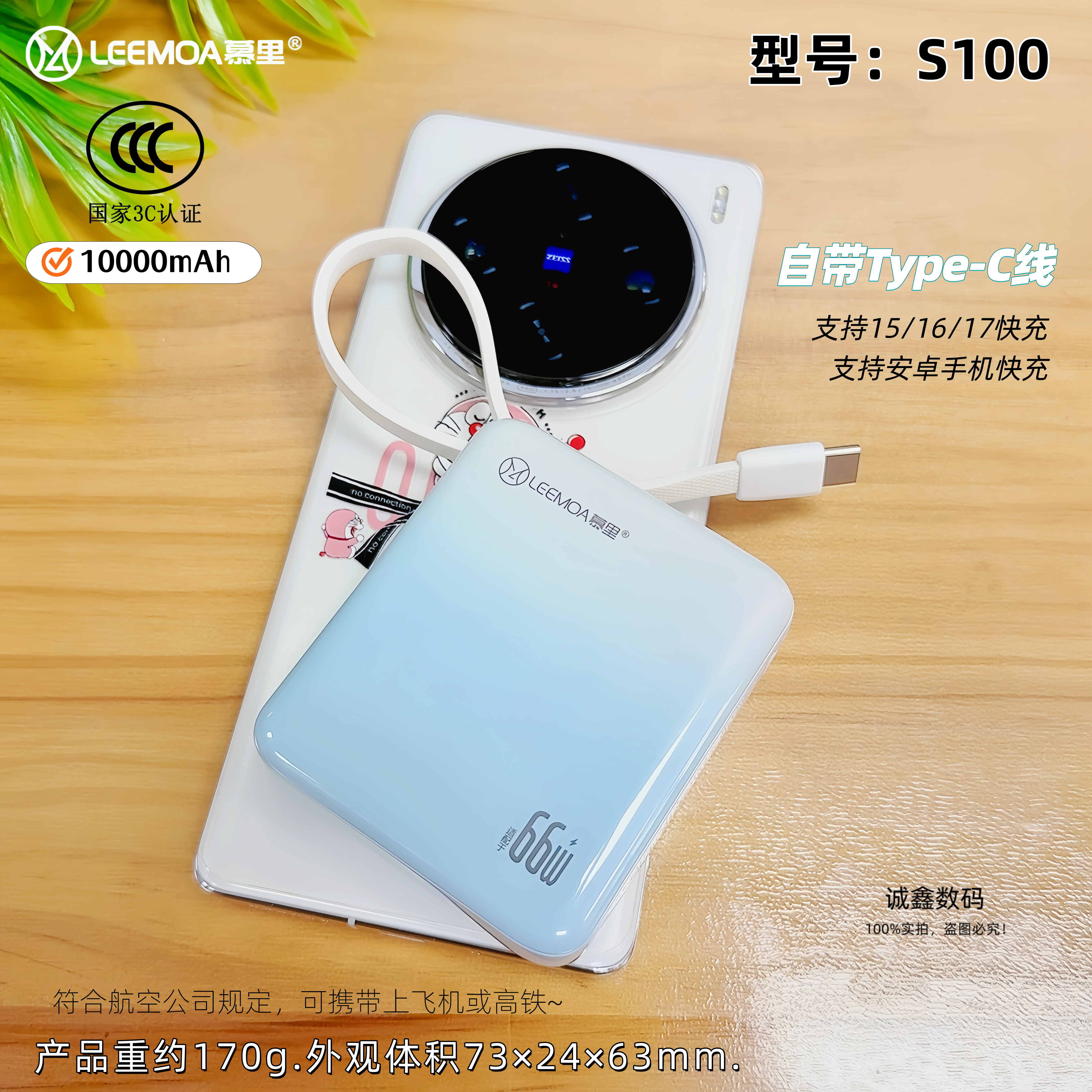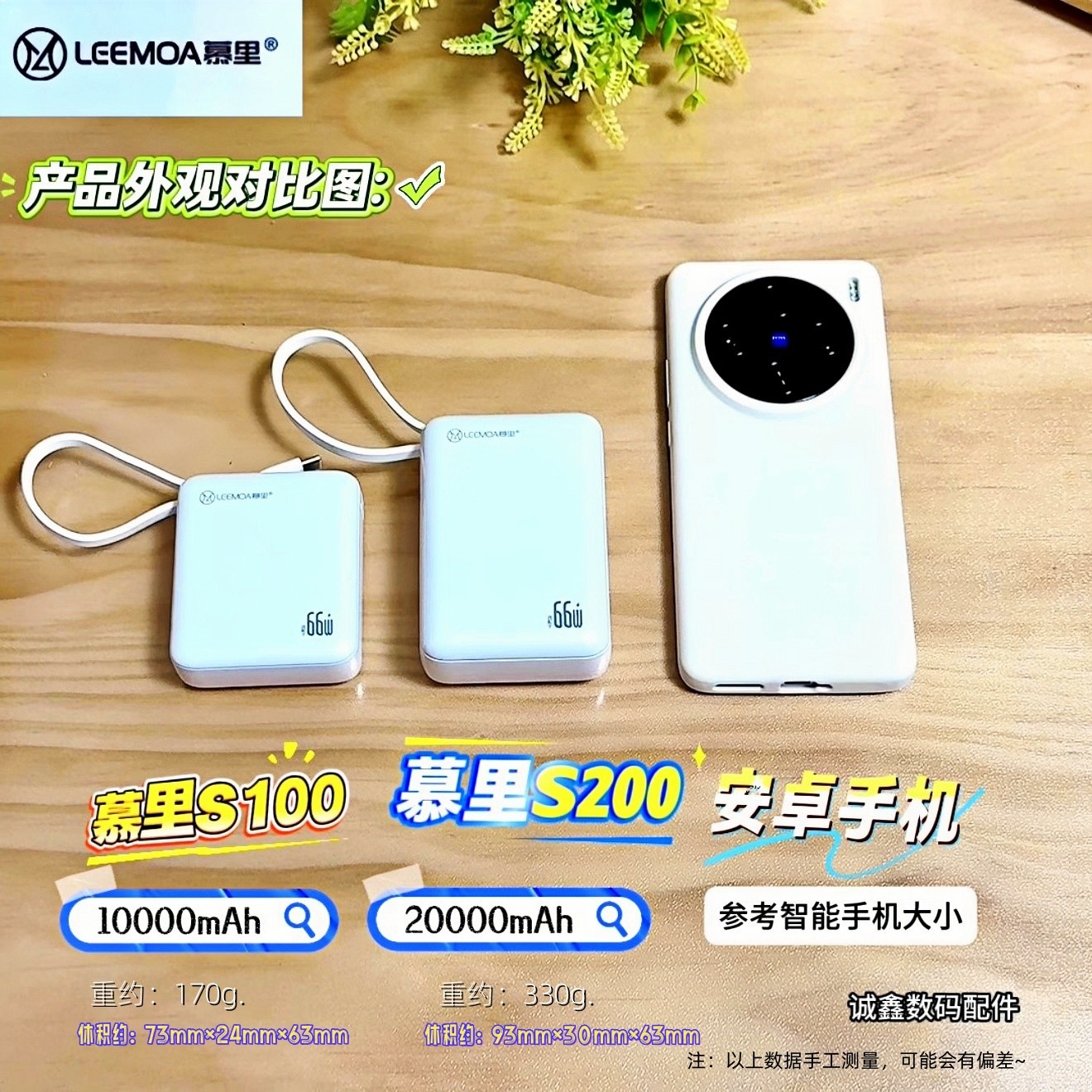 慕里S100/S200 2万移动电源迷你小巧便携3C充电宝自带typec线快充