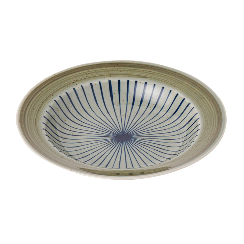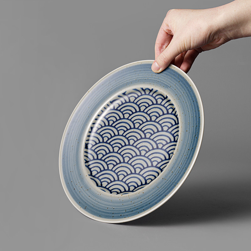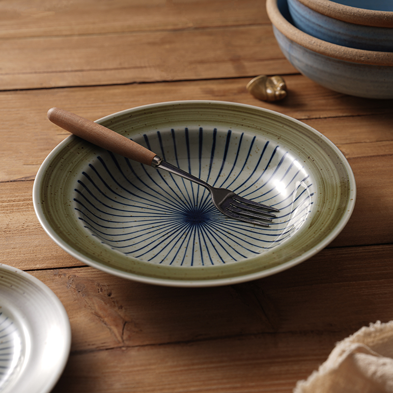 波佐见烧十草青海波日式餐盘家用复古简约深盘高颜值陶瓷意面圆盘