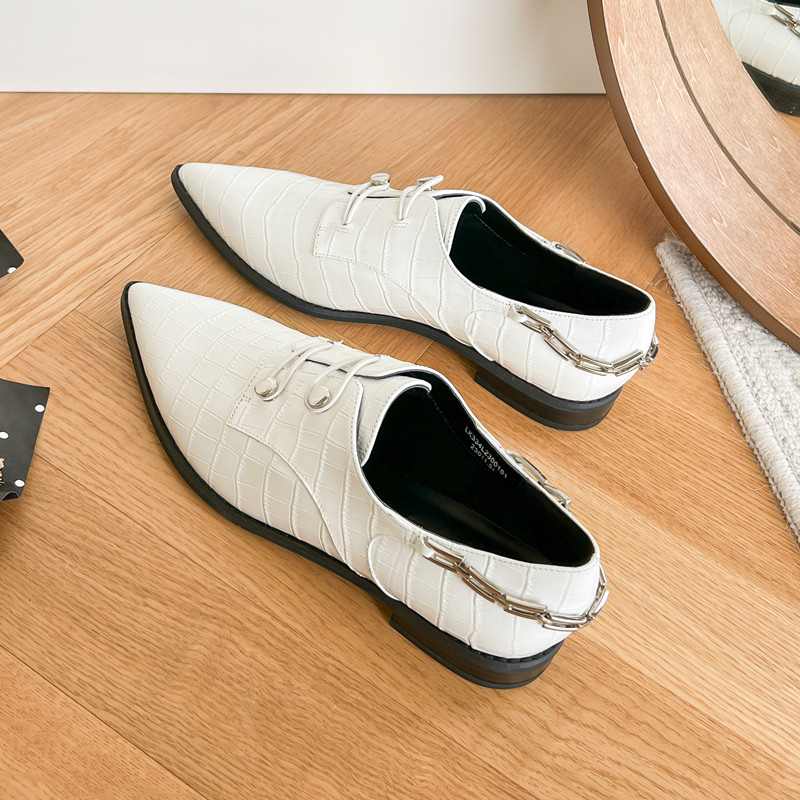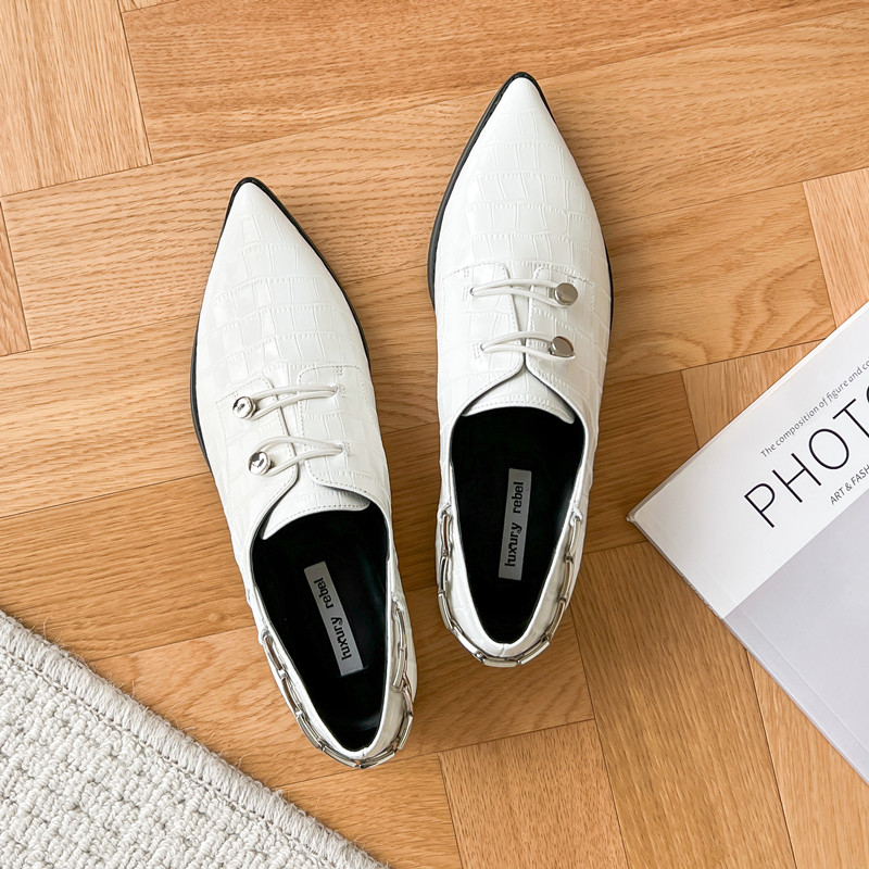 LuxuryRebel尖头平跟时尚牛津鞋鳄鱼纹英伦小皮鞋女LK334L23001