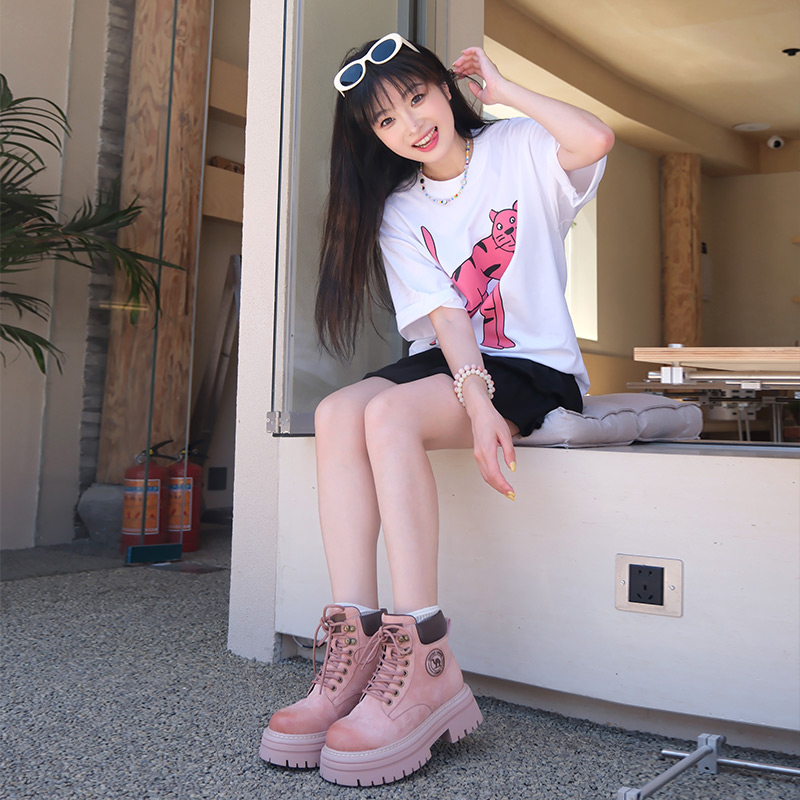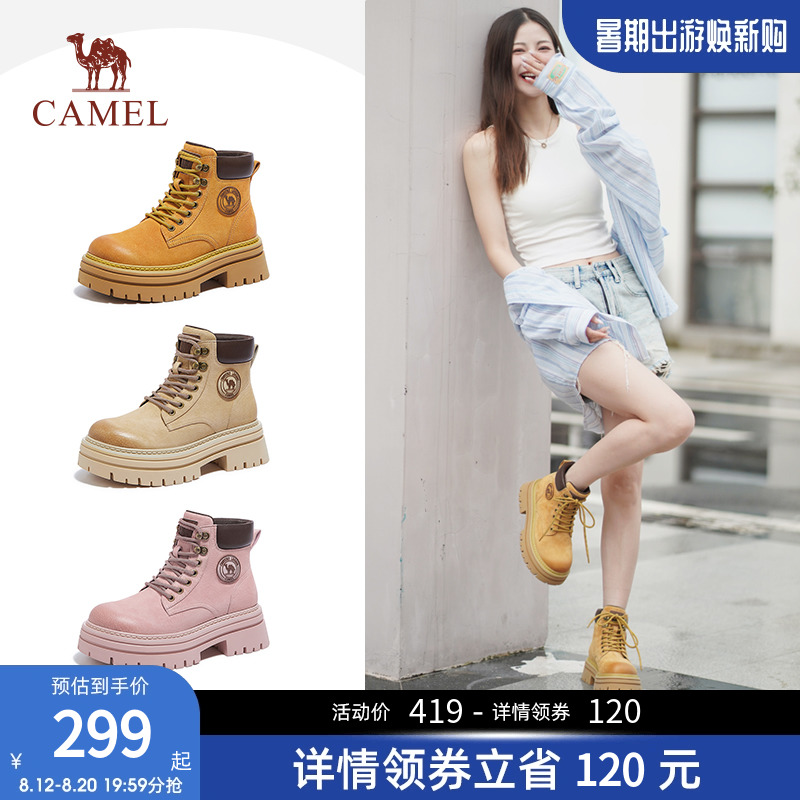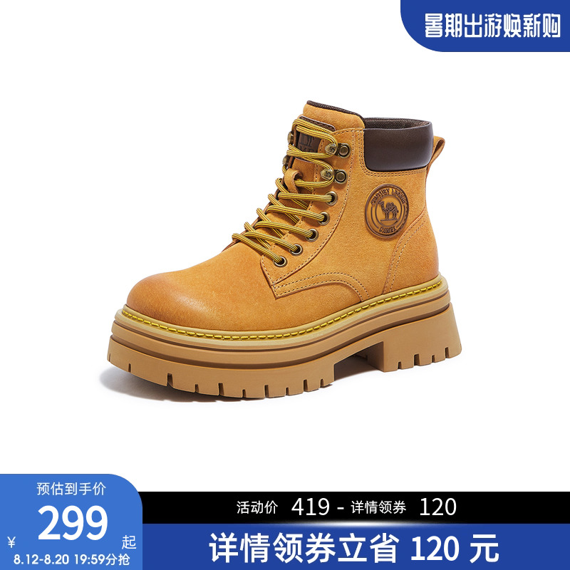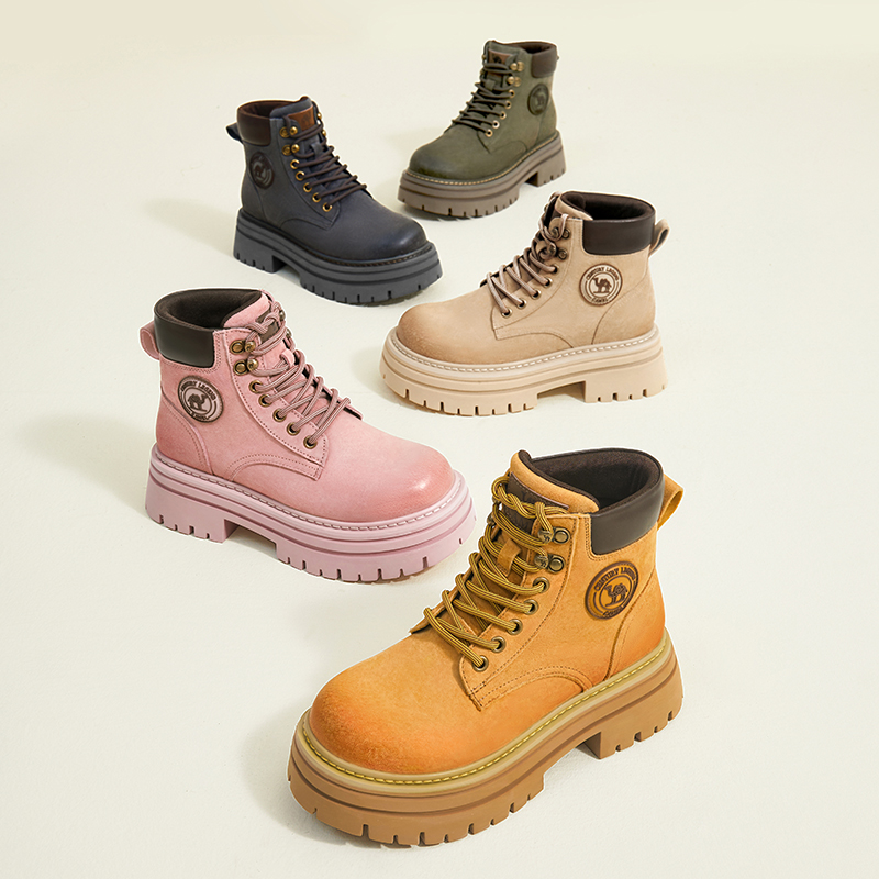 【白鹿同款】骆驼马丁靴女鞋2024秋季新款厚底大黄靴登山鞋短靴子