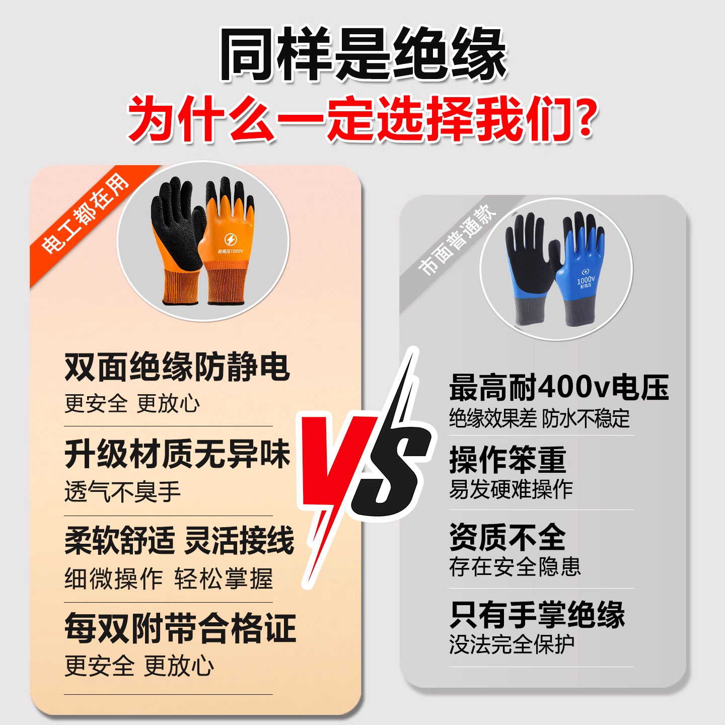 绝缘手套电工专用380v高压防触电1000v低压薄款橡胶220v带电作业