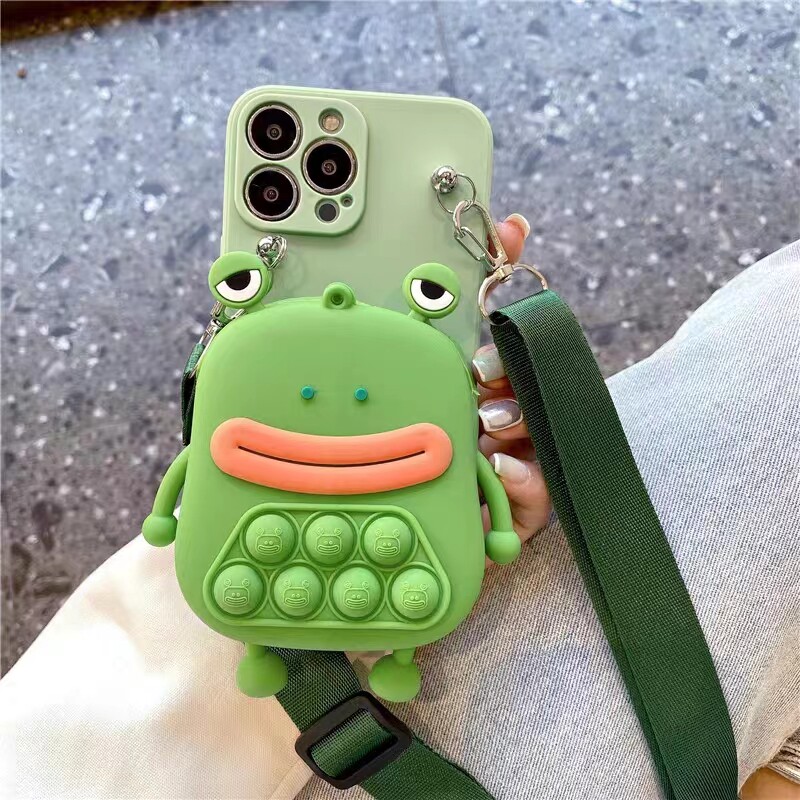 趣味可爱青蛙零钱包适用三星s23ultra手机壳A54女潮s10plus卡通小众s8s9斜跨挂绳note9全包A33软硅胶s21FE套