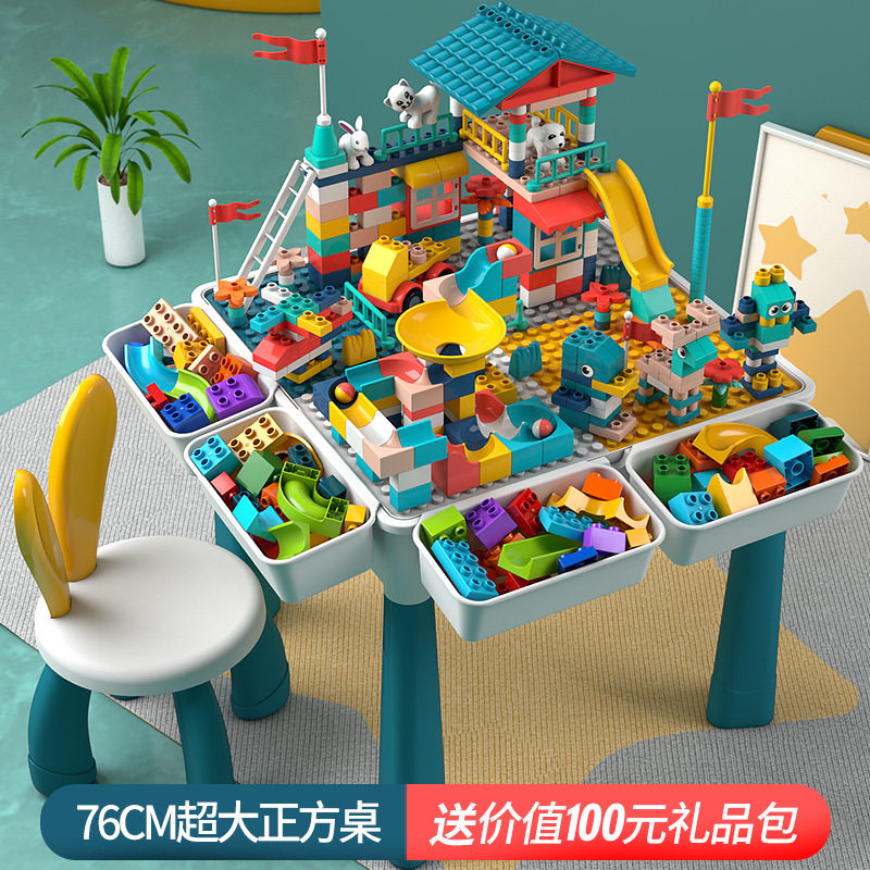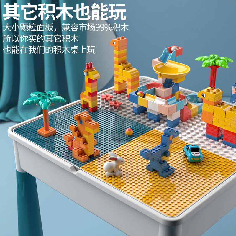 新款大颗粒积木玩具儿童多功能积木桌益智拼装学习桌普通塑料积木