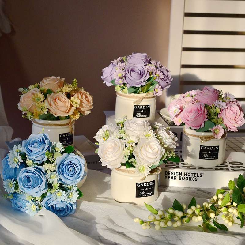 ins北欧假花仿真花室内家居干花摆件客厅玫瑰茶苞餐桌装饰品摆设