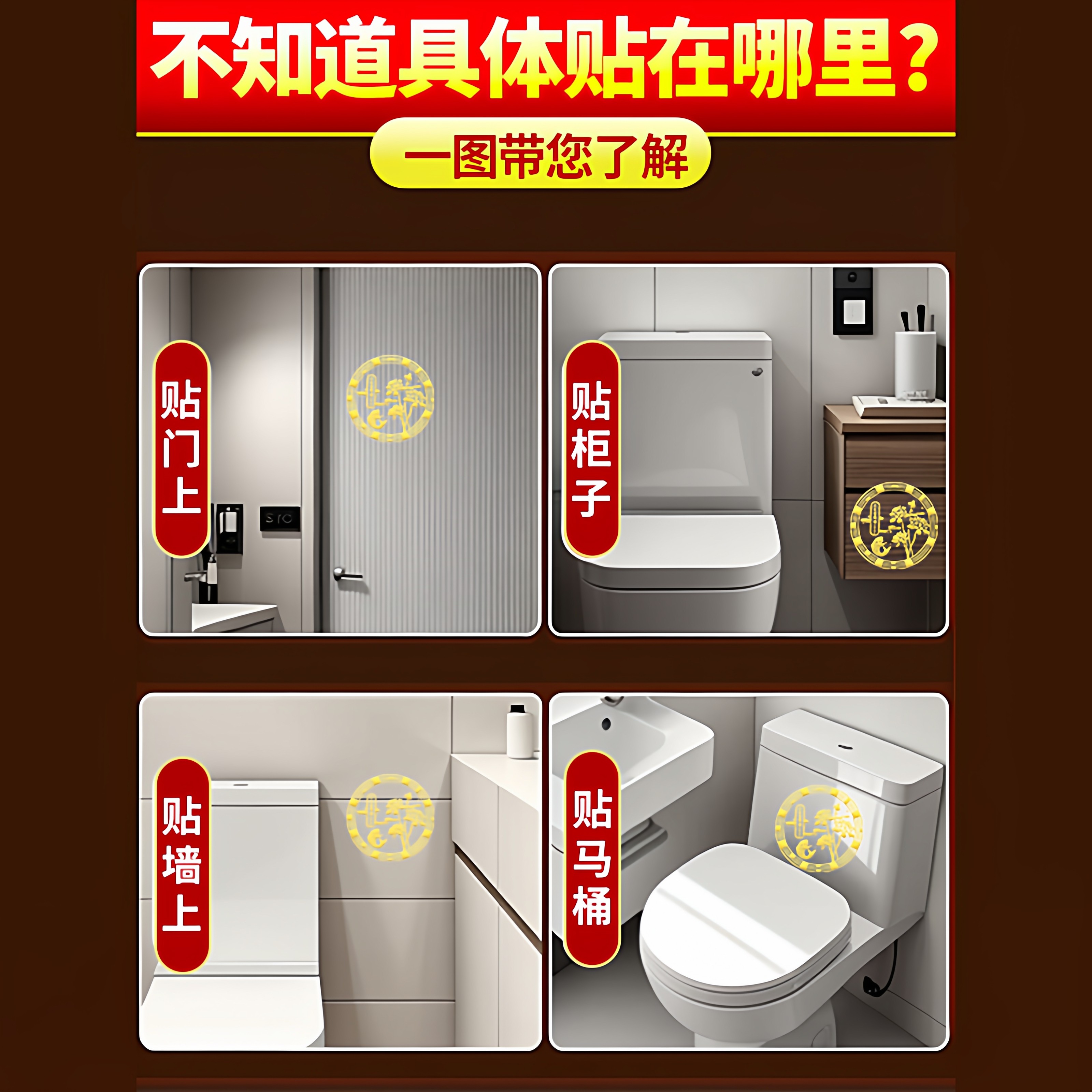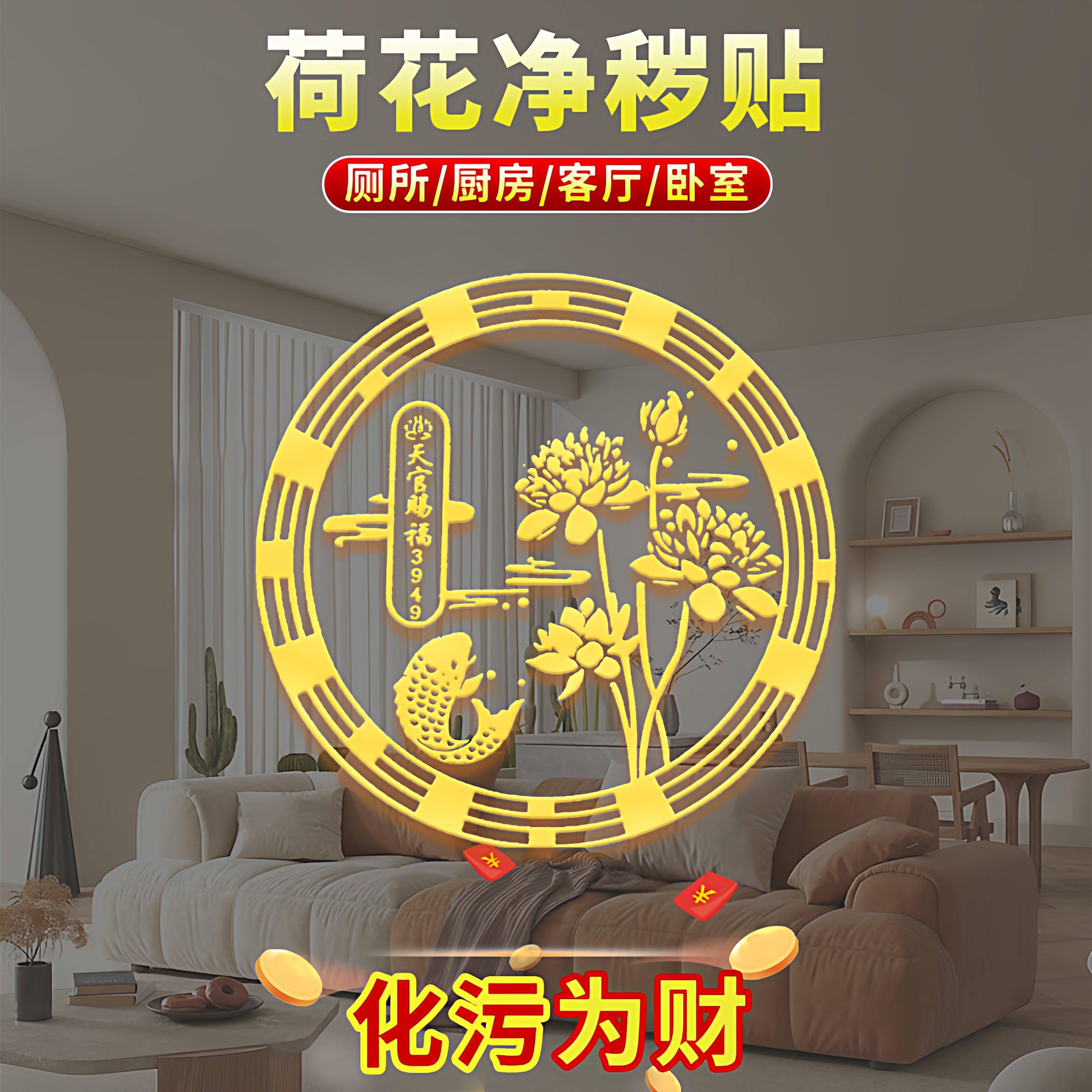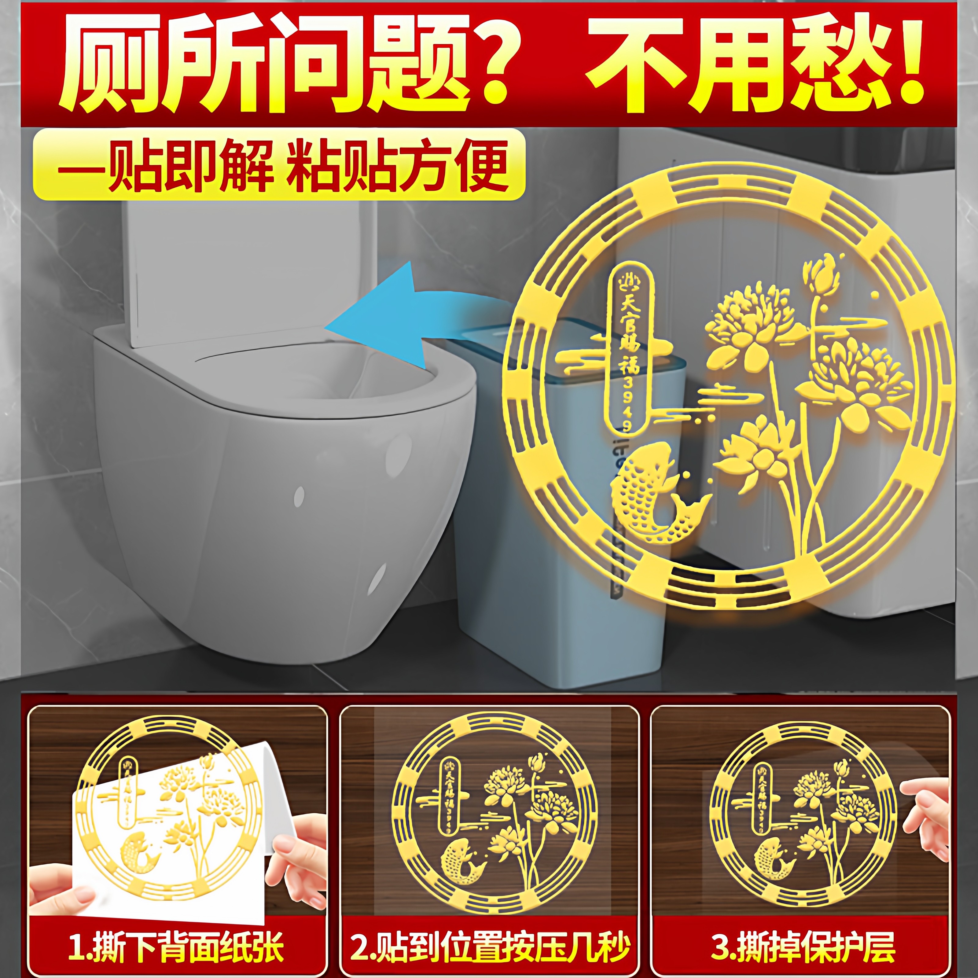 荷花鲤鱼净秽图卫生间莲花防水贴纸好运连连厕所金属贴画鞋柜