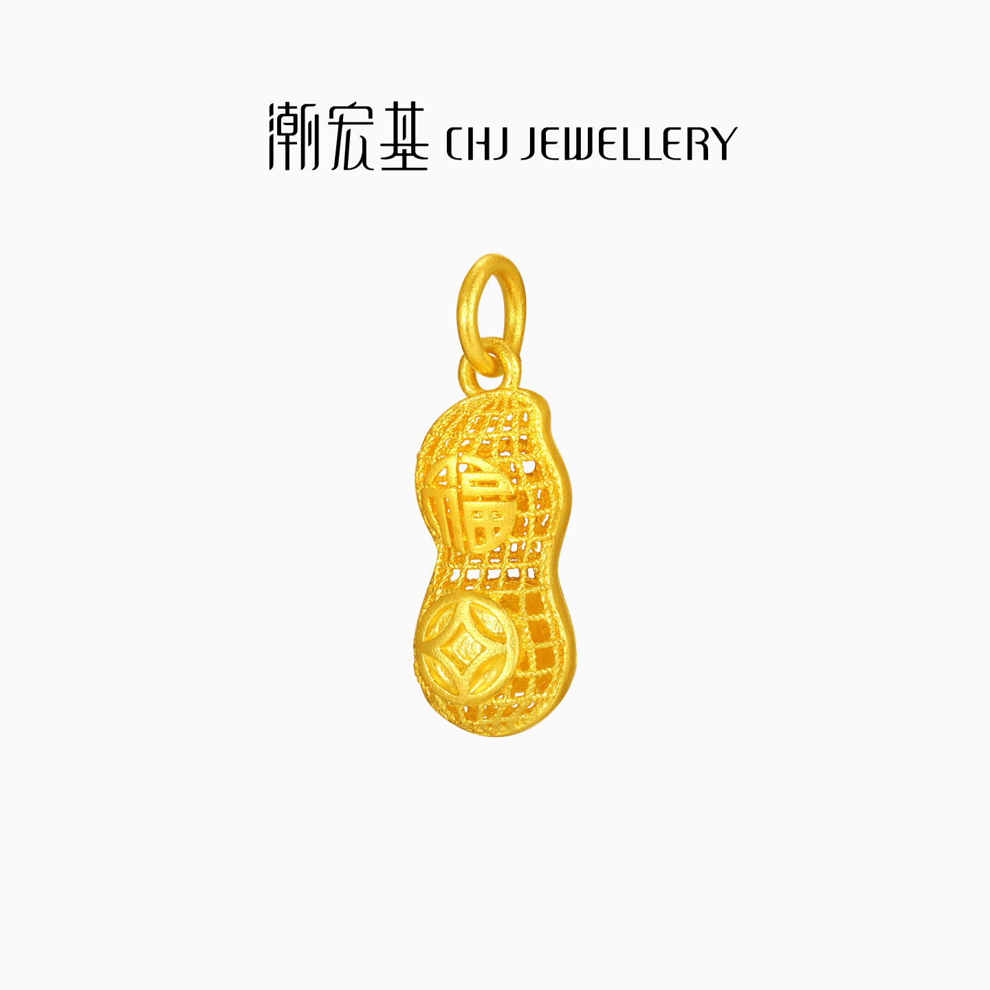 潮宏基黄金吊坠足金挂坠古法花生好事发生福禄颈饰礼物送女友