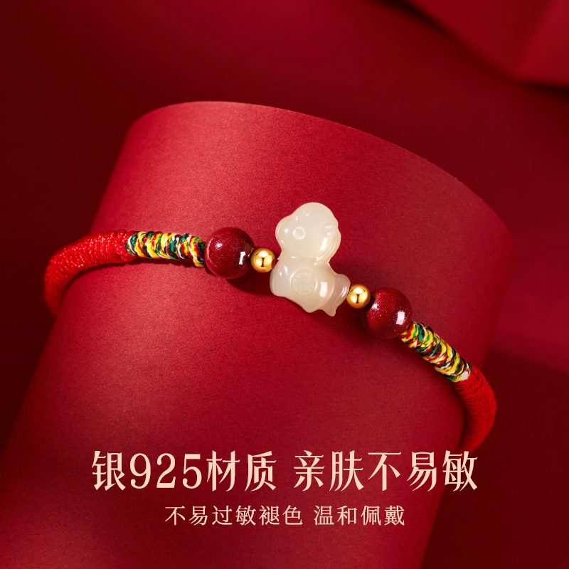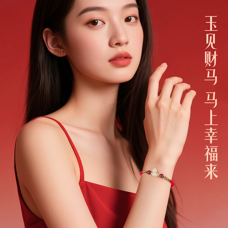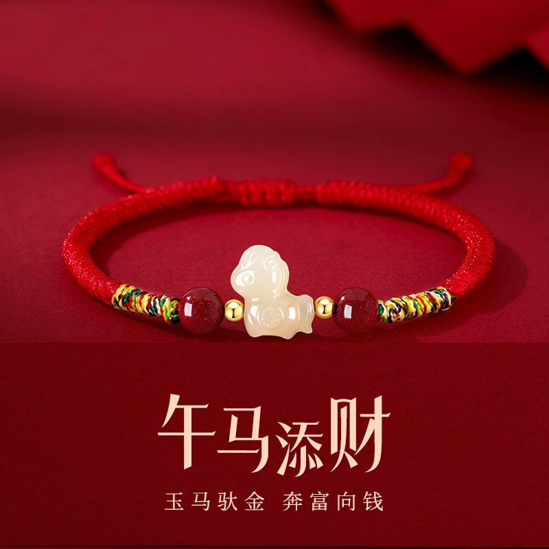 中国黄金央创本命年手链2026马年红手绳和田玉手饰生日礼物送女友