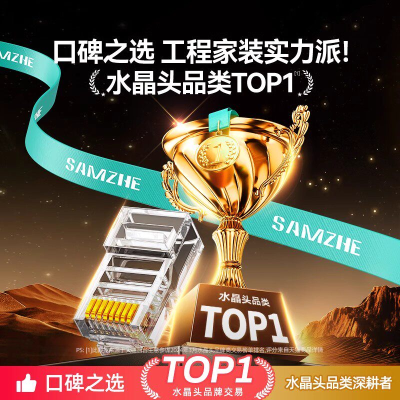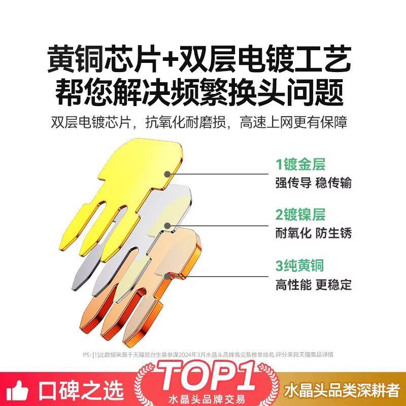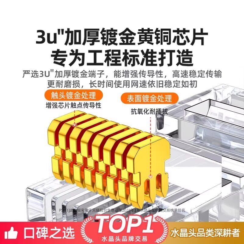 山泽网线水晶头超六类镀金纯铜电脑网络线连接头RJ45对接头