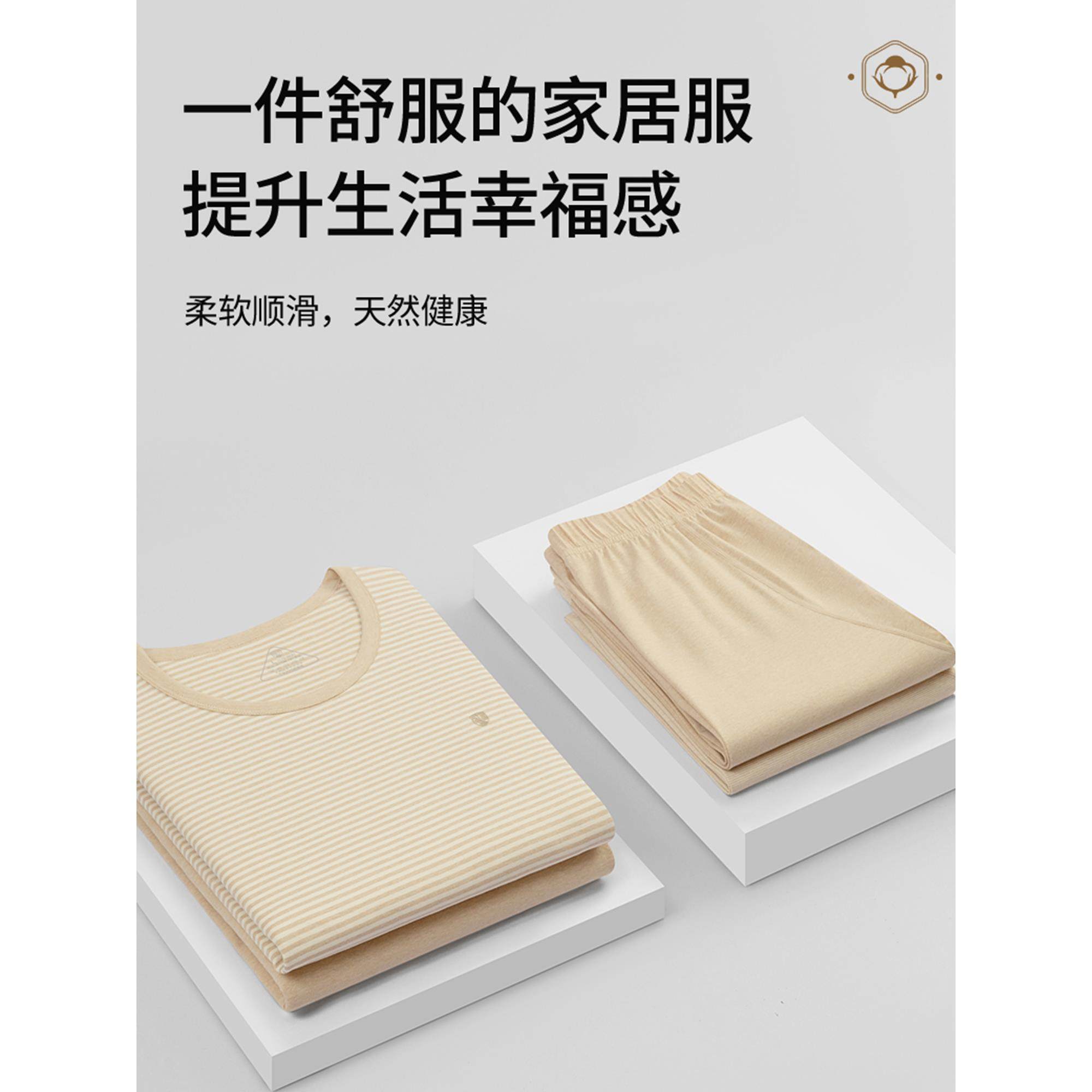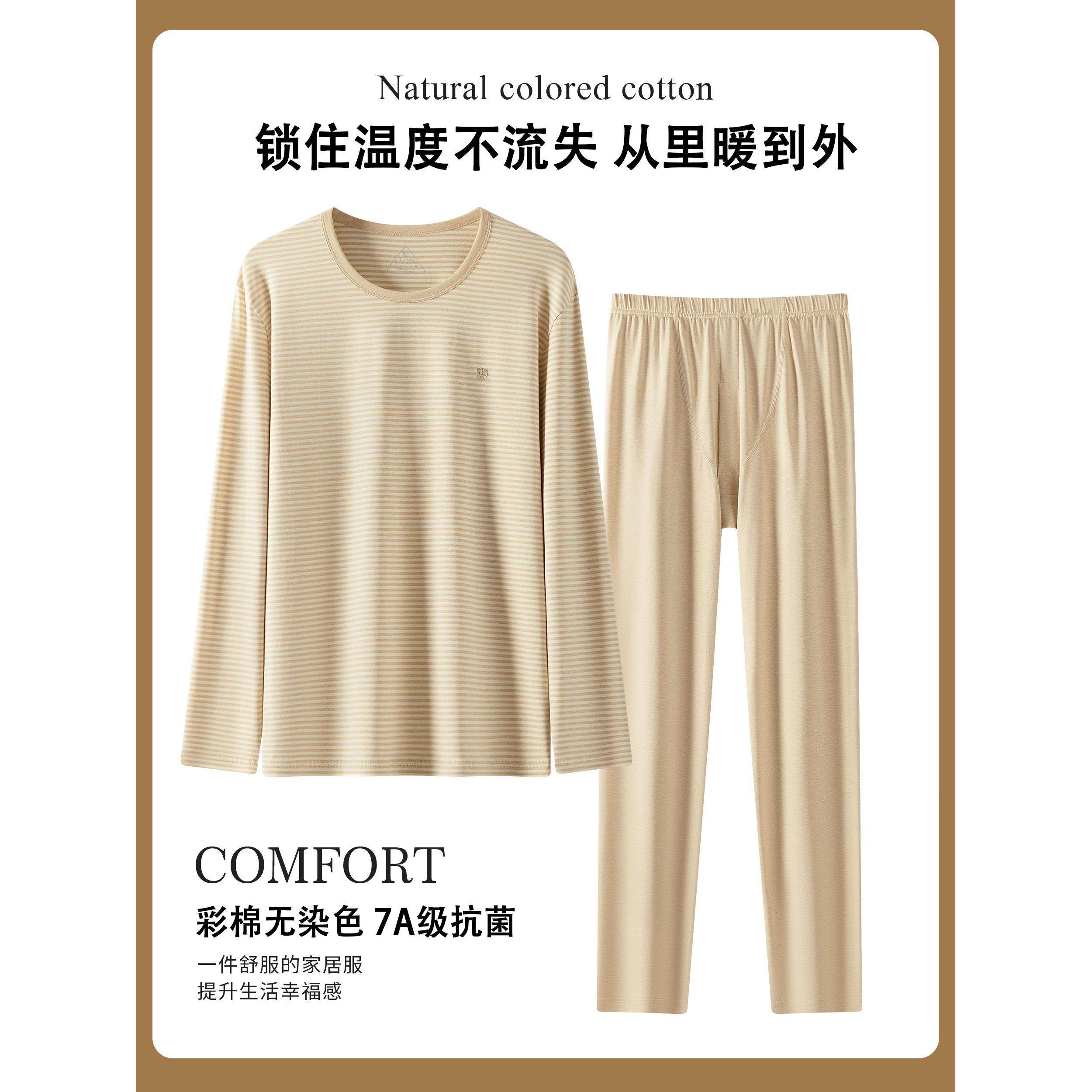 彩棉无染色男士保暖内衣套装7A抗菌秋衣秋裤女士睡衣家居服秋冬季
