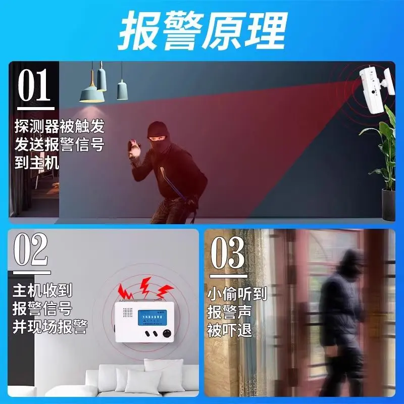 安之翼红外线防盗报警器家用店人体感应器无线远距离安防报警系统