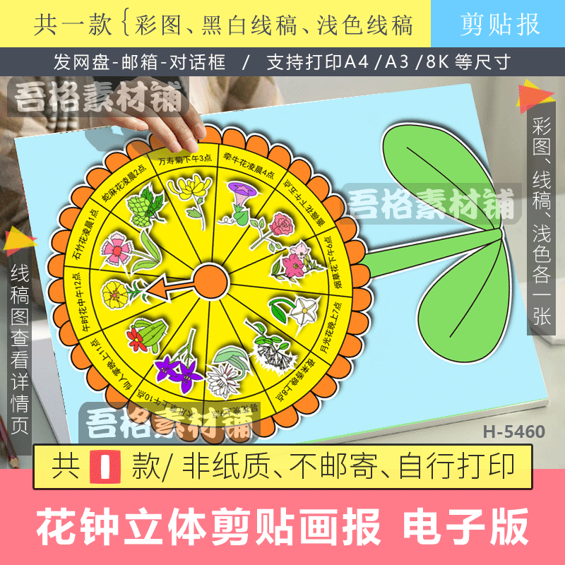 竖版花钟手抄报立体剪贴画报模版电子版三年级下册语文手抄报线稿
