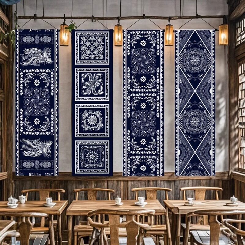 民族风贵州苗族蜡染风长条幅挂布餐饮店装饰民宿天花板背景布天幕