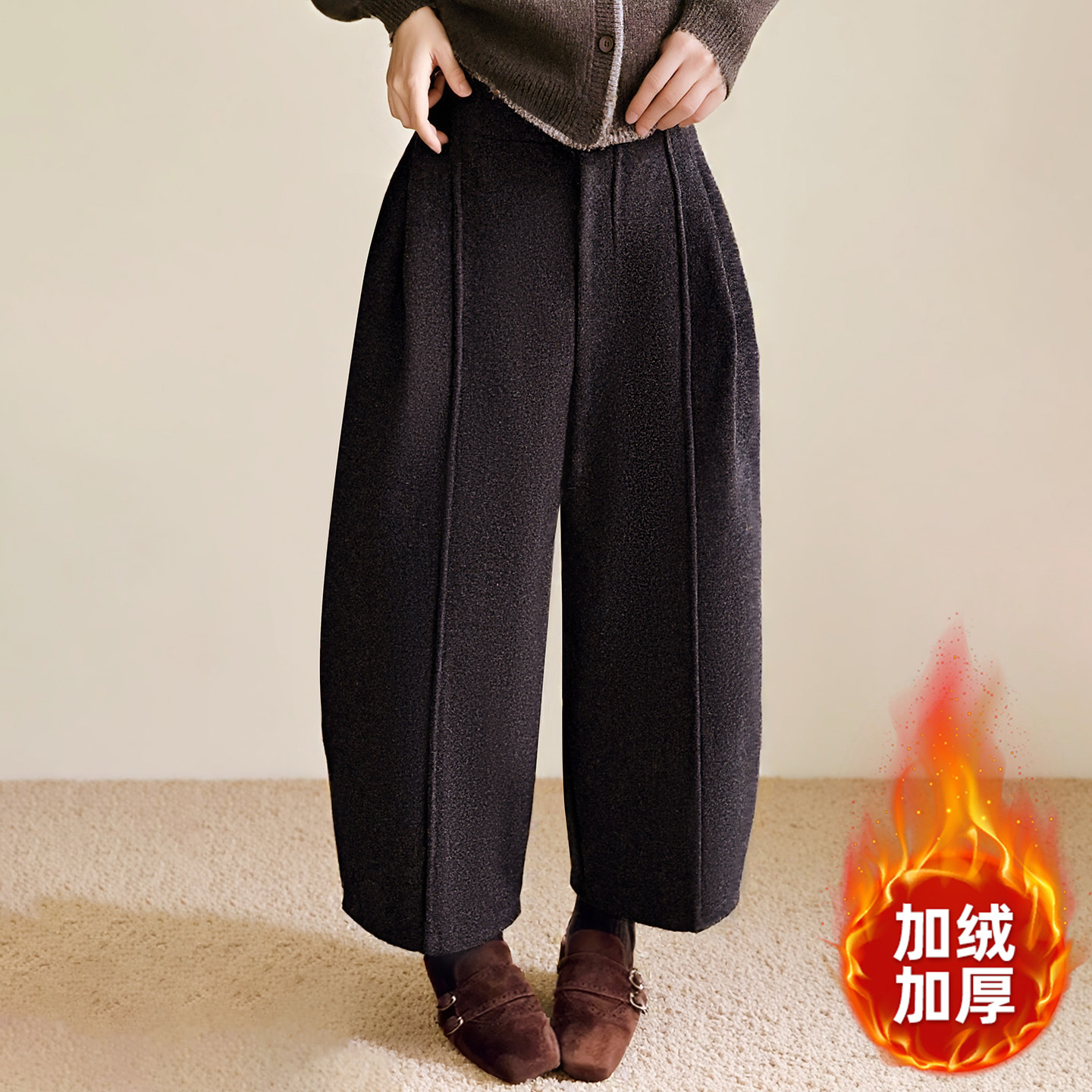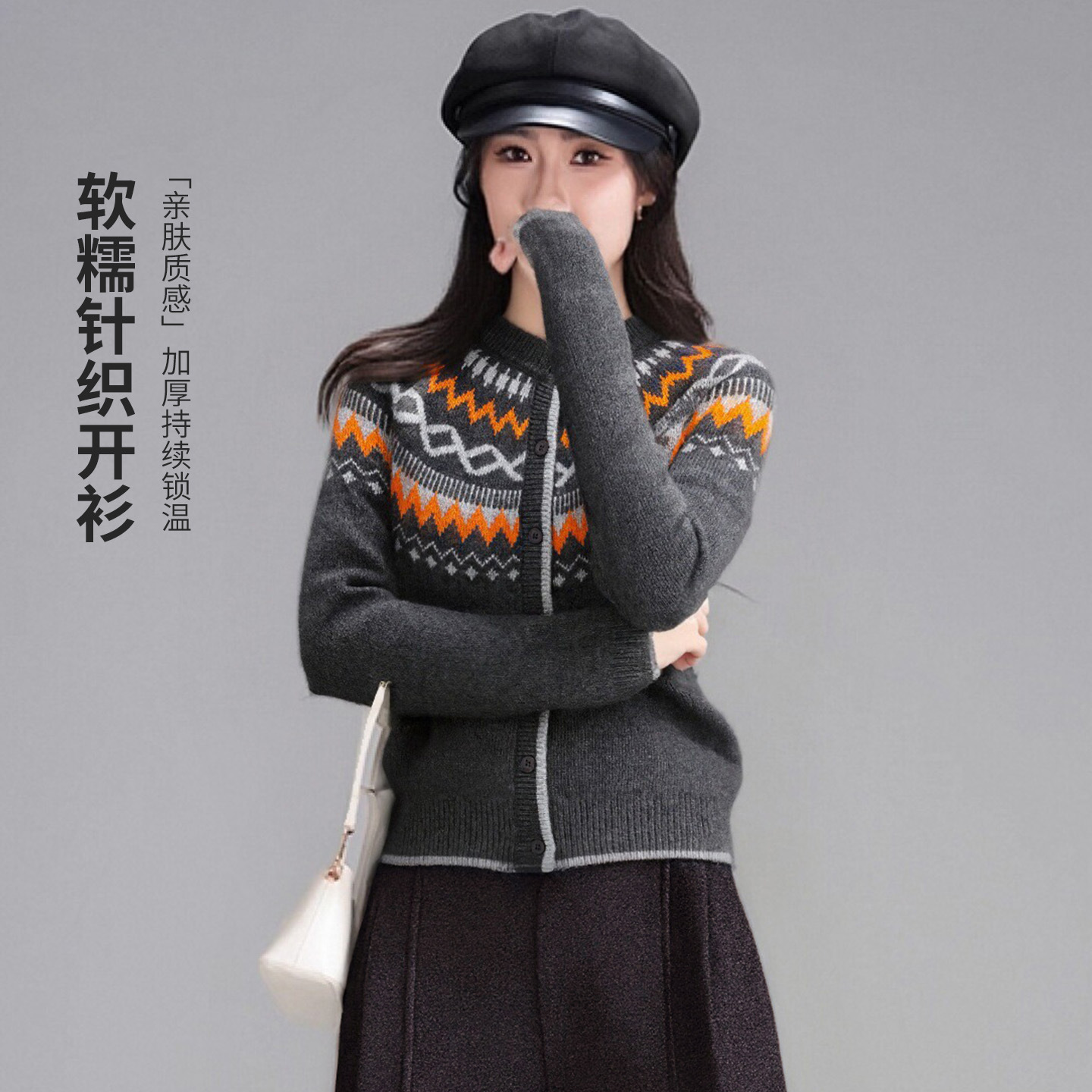 女士时尚套装2025秋冬浣熊针织衫+加绒加厚毛呢八分裤可选两件套