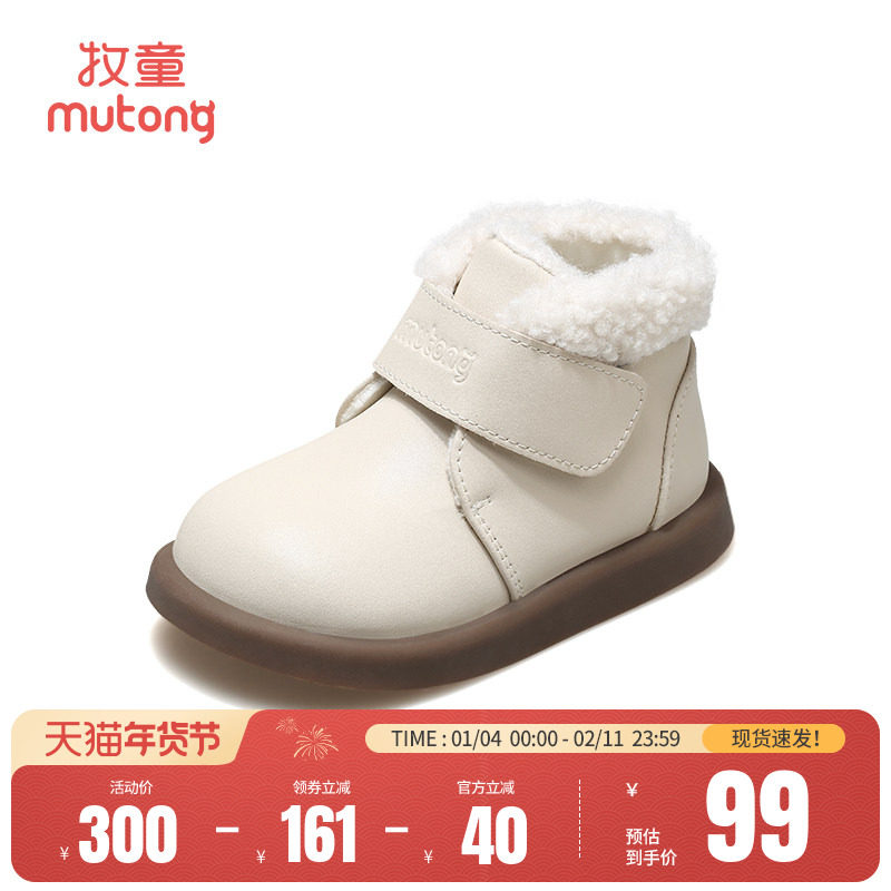 牧童童鞋女童靴子冬季新款加绒保暖皮靴洋气软底马丁靴小女孩短靴