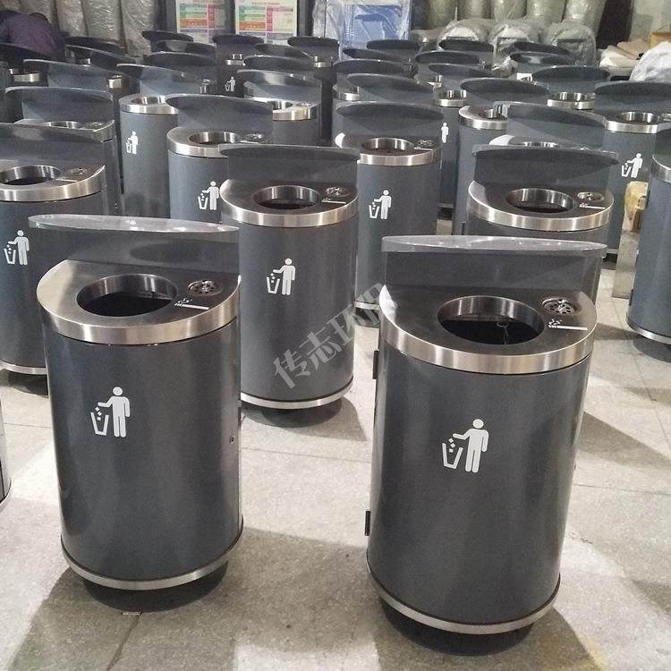 深圳市政道路垃圾桶圆柱形户外其他垃圾收集容器室外钢制板果皮箱