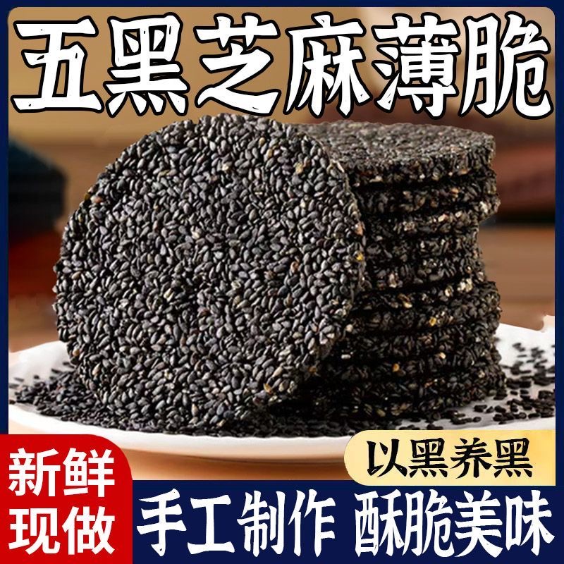五黑黑芝麻薄脆饼干坚果酥脆无蔗糖代餐饱腹美味营养健康解馋零食
