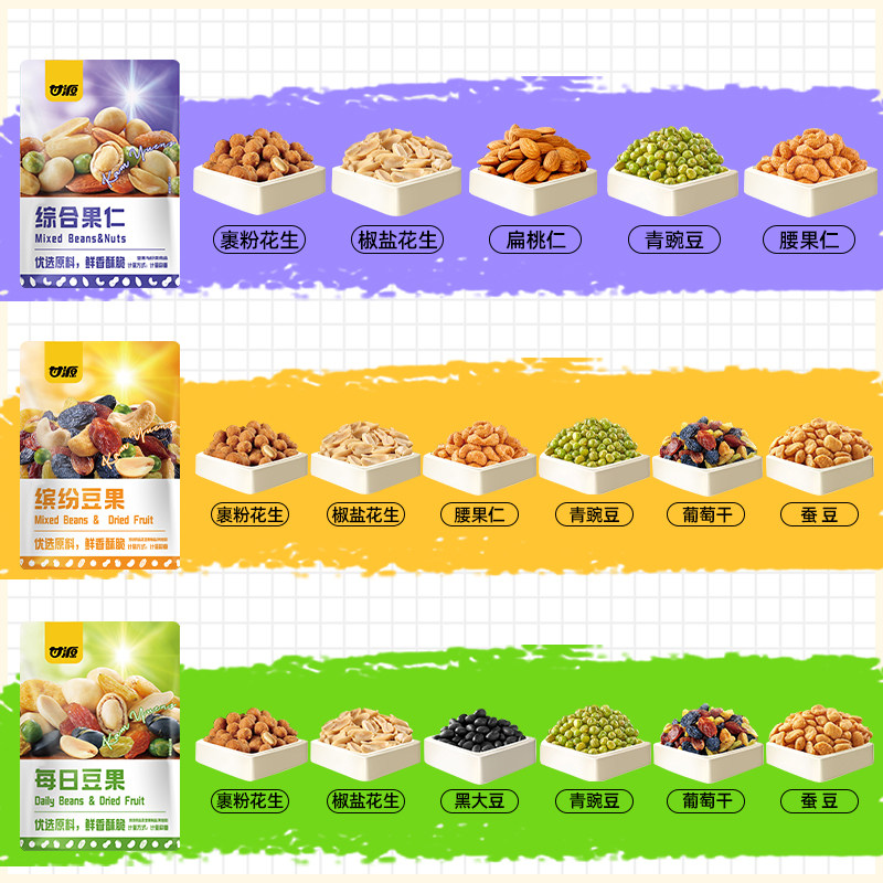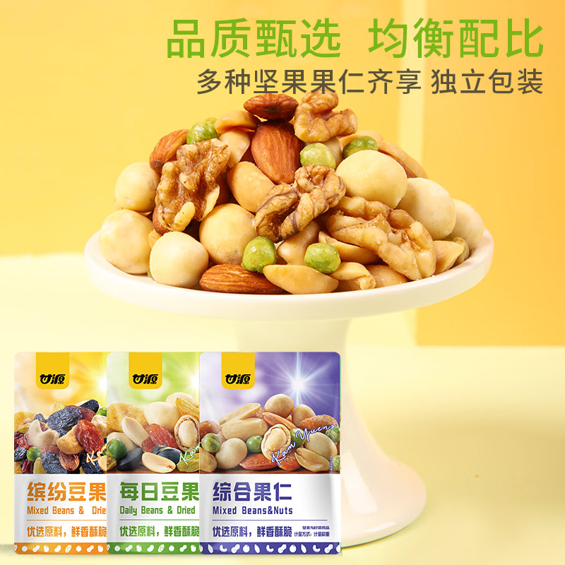 甘源综合果仁小包装混合坚果缤纷每日豆果散装小零食品官方旗舰店