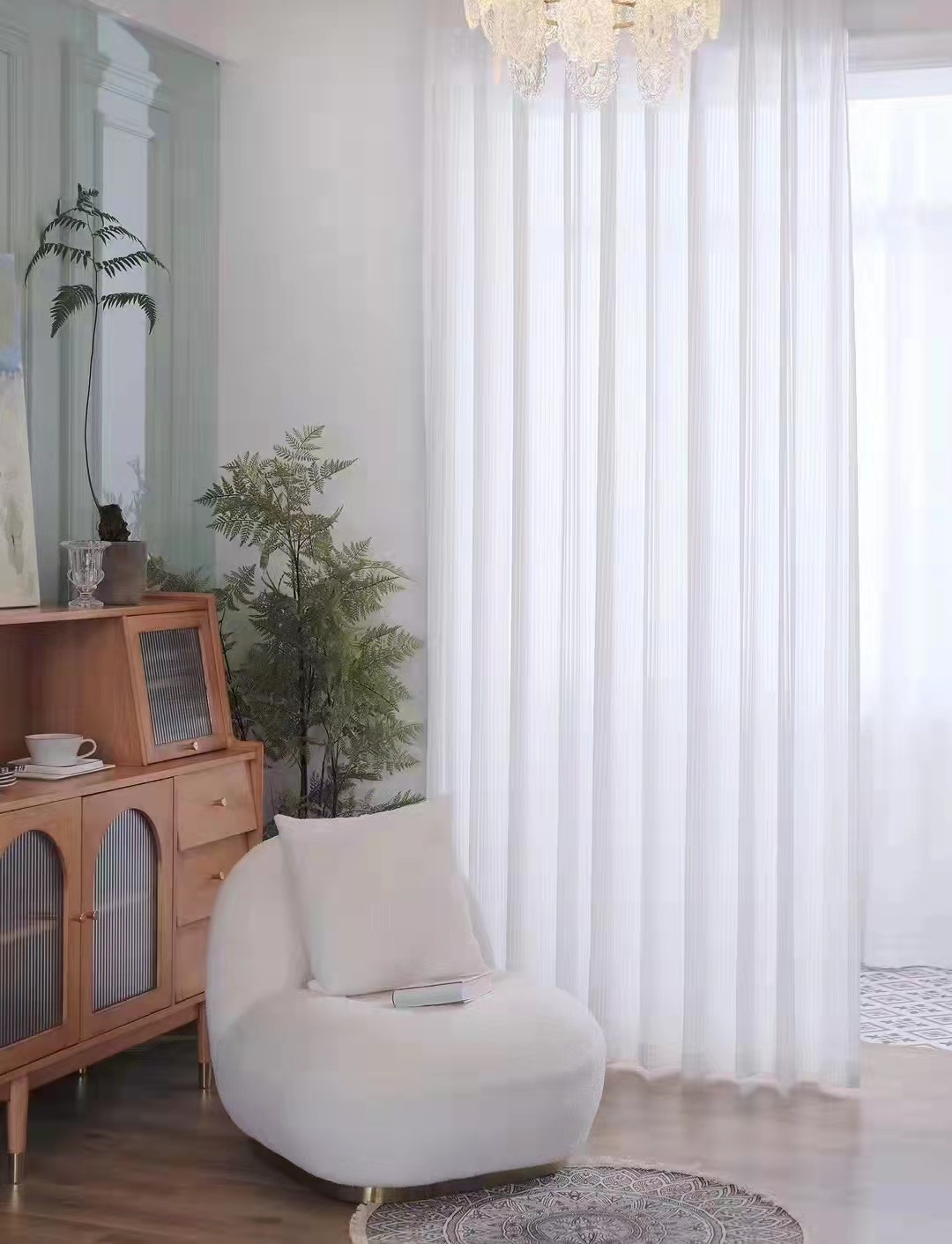 免打孔白色竖百叶纱条纹梦幻帘魔术贴皱褶挂钩窗纱帘客厅阳台飘窗