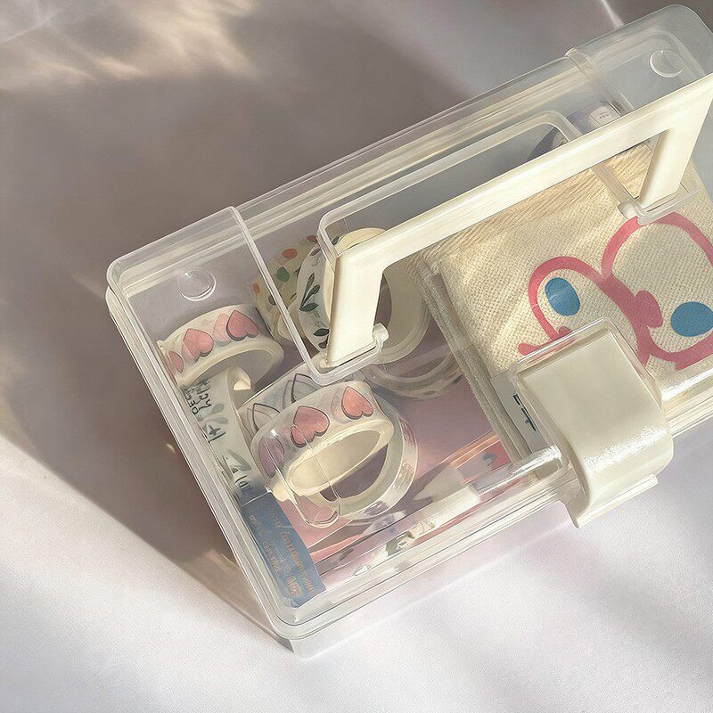 手提整理盒简约ins收纳盒透明药箱学生宿舍无印风防尘多功能药盒