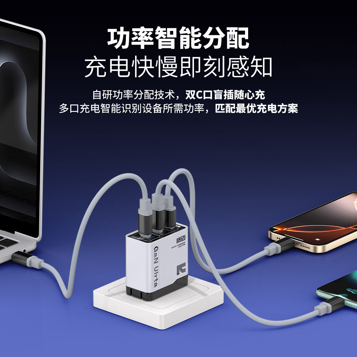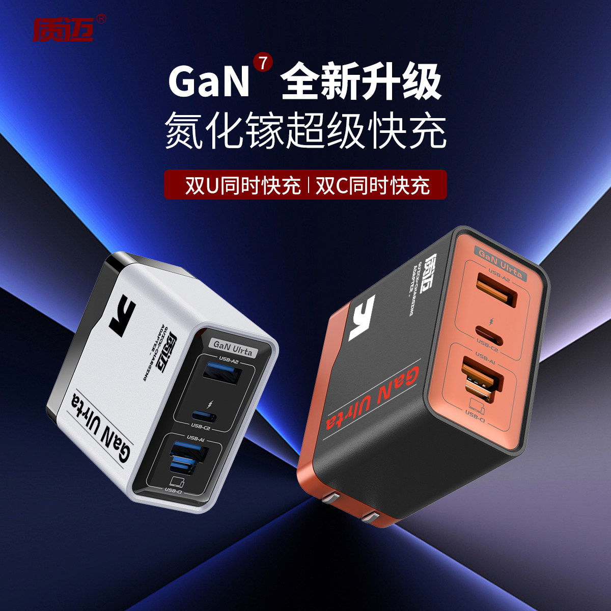质迈M7充电器氮化镓全协议闪充45W适用苹果华为vivo小米OPPO手机多机型通用双口同时超级快充充电头四口套装