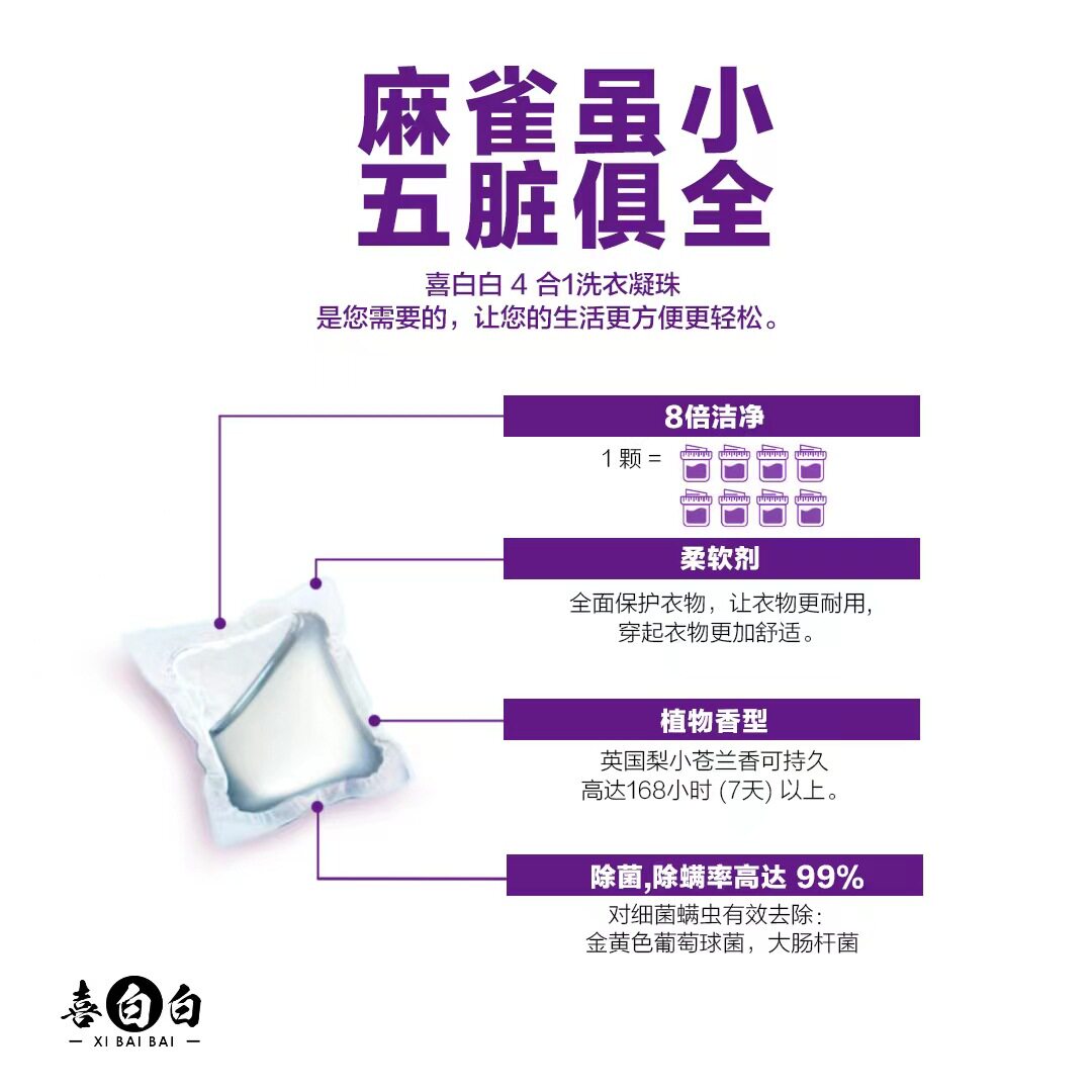 喜白白洗护凝珠英国梨小仓兰留香袋装液洗衣液母婴祛螨浓缩香氛
