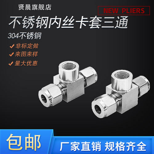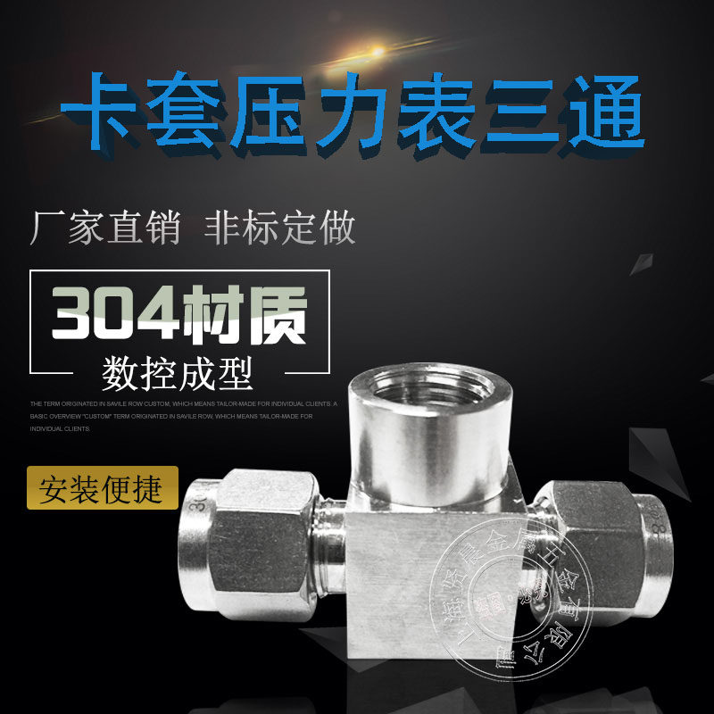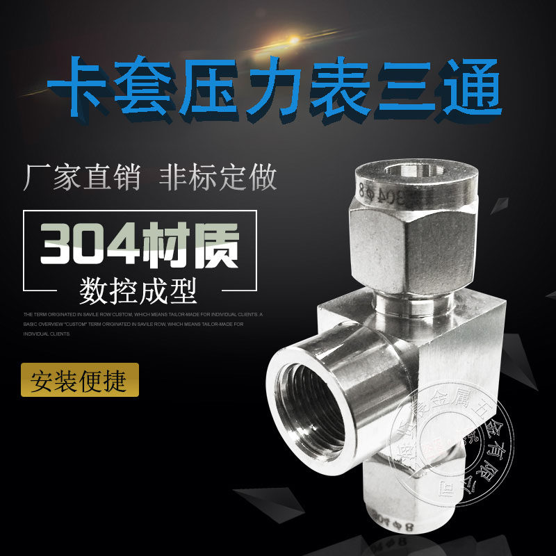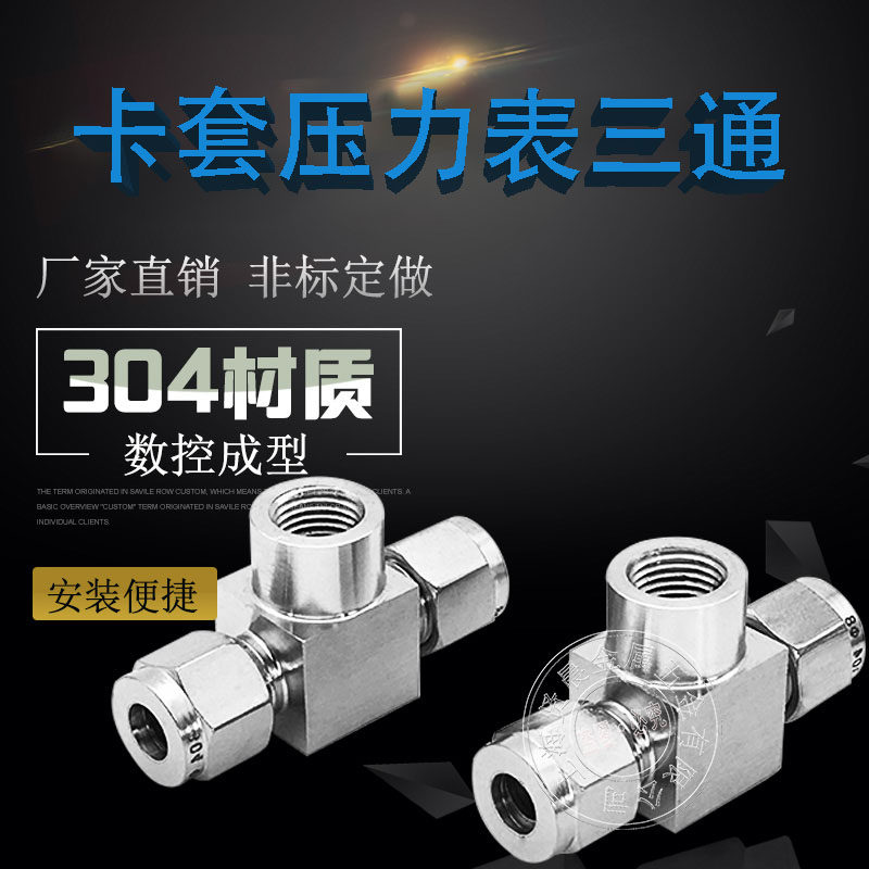 304不锈钢内丝卡套三通 压力表三通接头1/2Φ8Φ12M10*1 M14*1.5