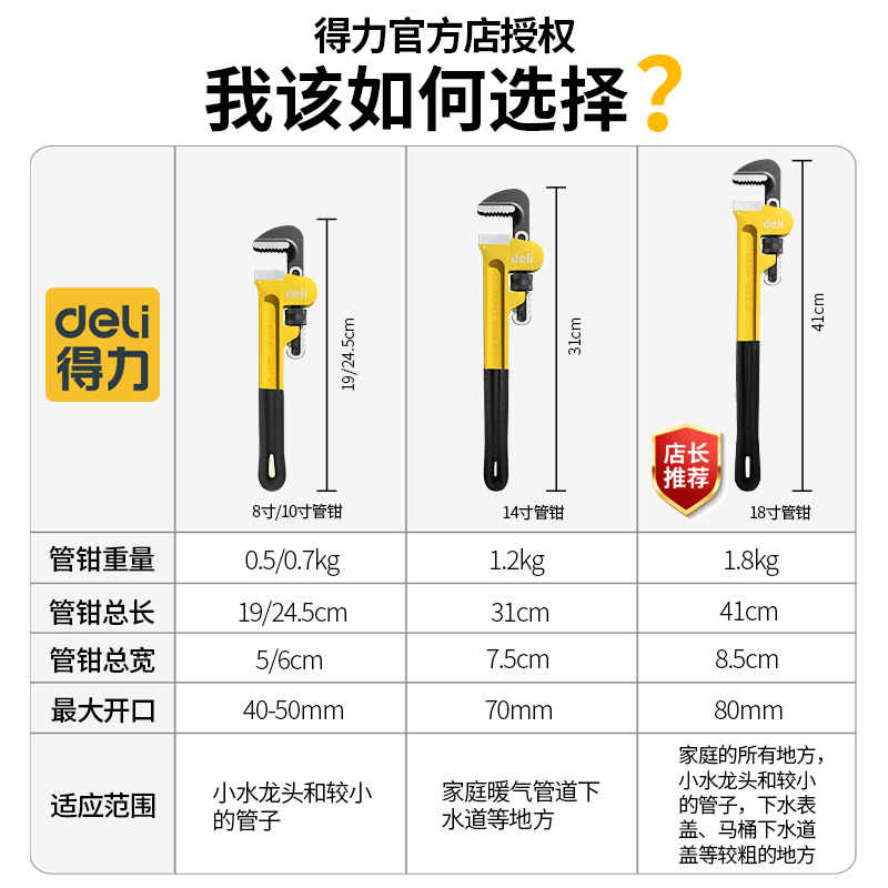 得力管钳子万能扳手家万用快速大开口小号多功能水暖工具水管子钳