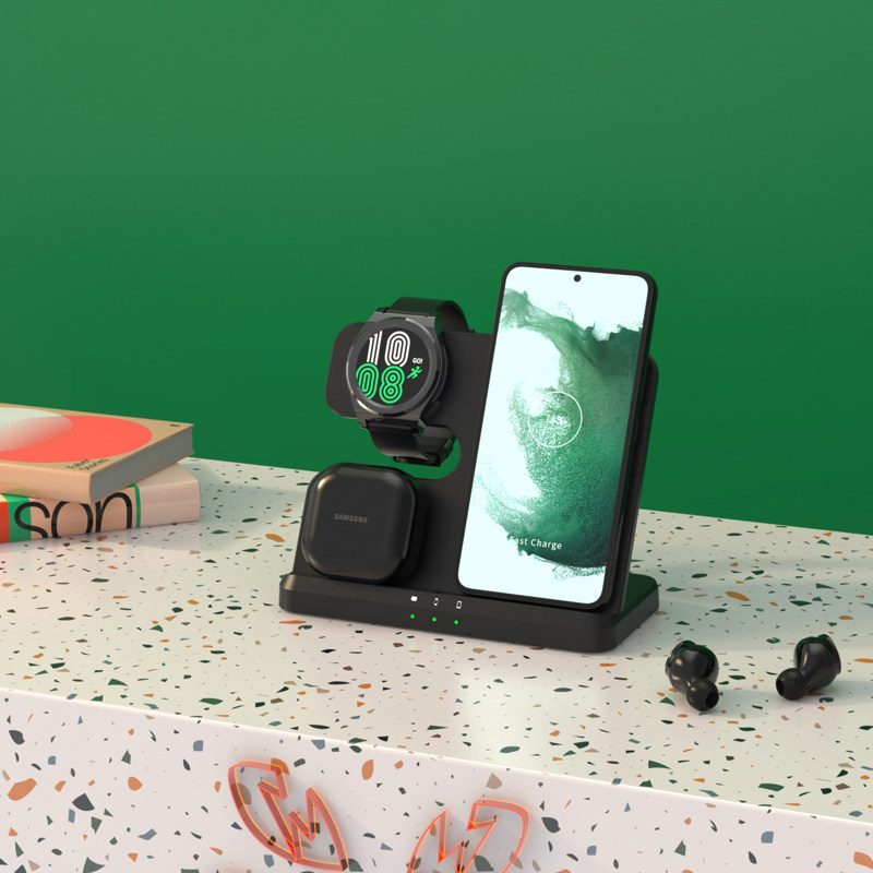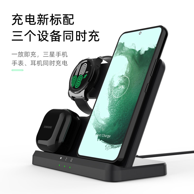 无线充电器适用三星Galaxy Z Flip5/4/3折叠屏手机Watch6手表7耳机Buds三合一S20/S22+/S23立式充电支架底座