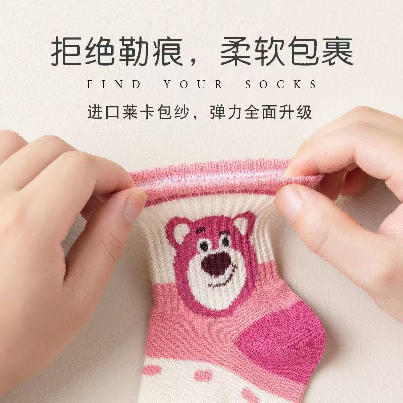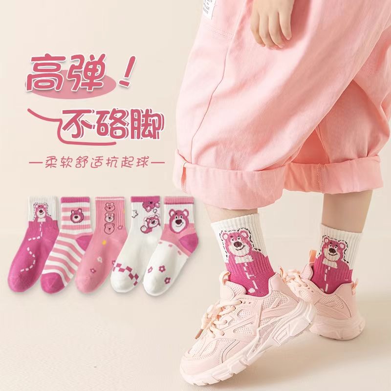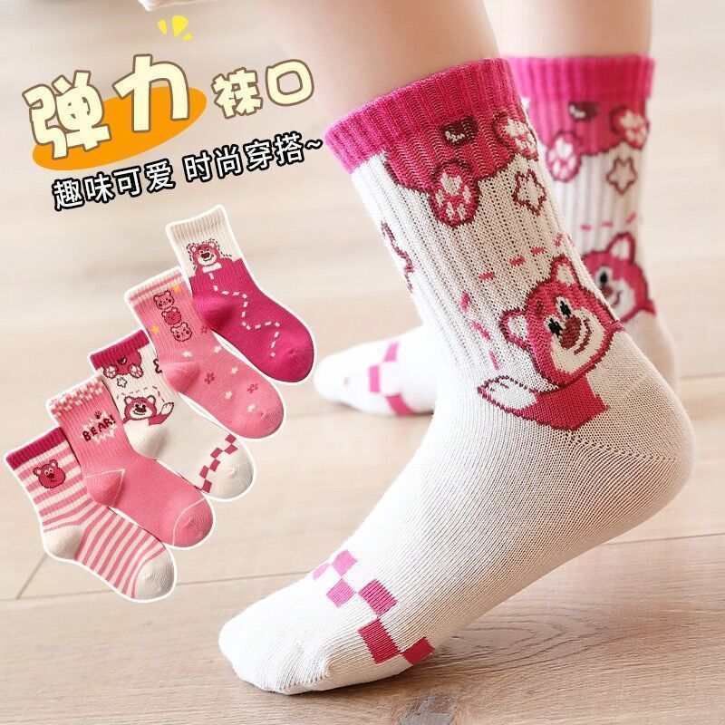 女童袜子秋季儿童袜草莓熊儿童女孩中小童宝宝夏薄款防臭中筒棉袜
