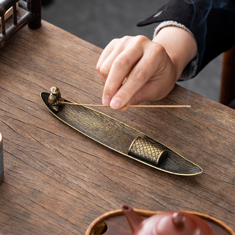 线香炉家用沉香檀香炉茶道创意船摆件香薰炉香托书桌插香卧香底座