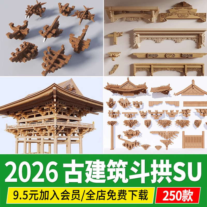 斗拱木结构中式古建筑构件组件卯榫工艺屋架构造木工做法图su模型