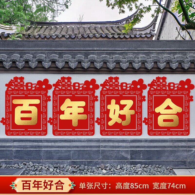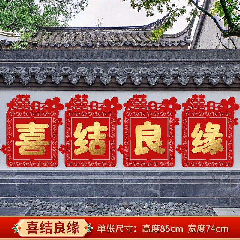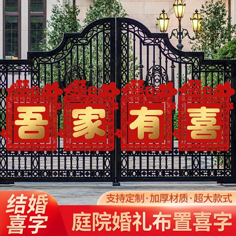 结婚定制超大喜字贴围墙路引布置院子婚庆围栏装饰男女姓氏墙贴喜