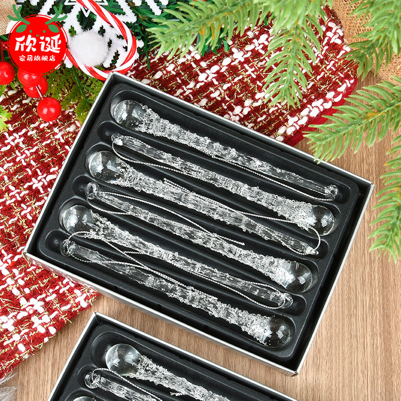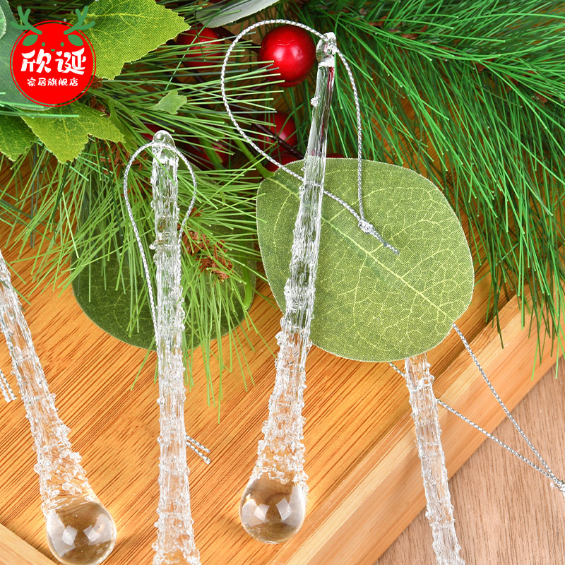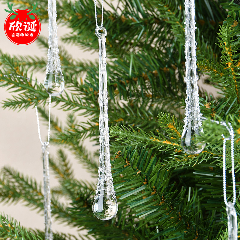 圣诞节装饰品盒装水滴透明玻璃冰条吊饰圣诞树装饰挂饰场景布置