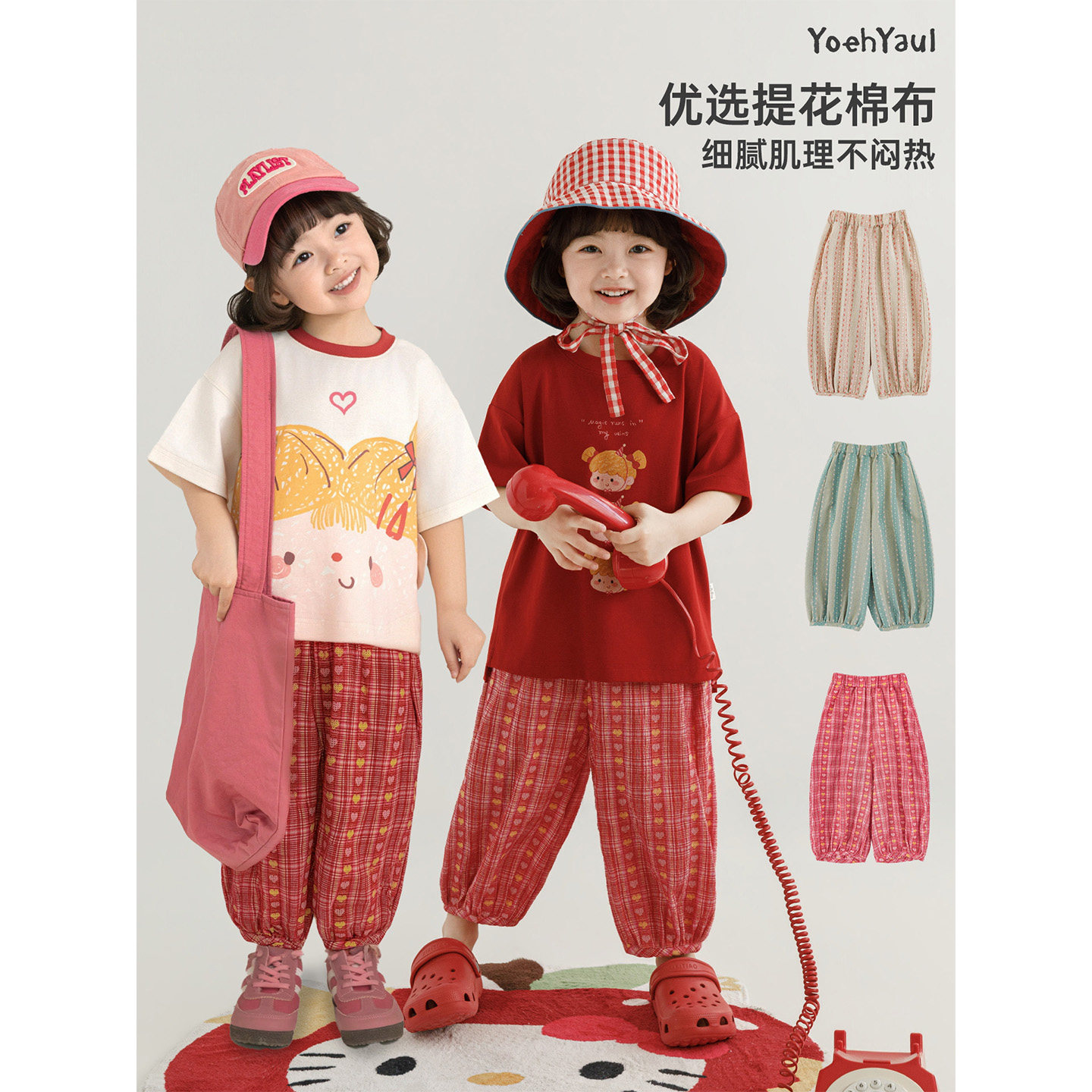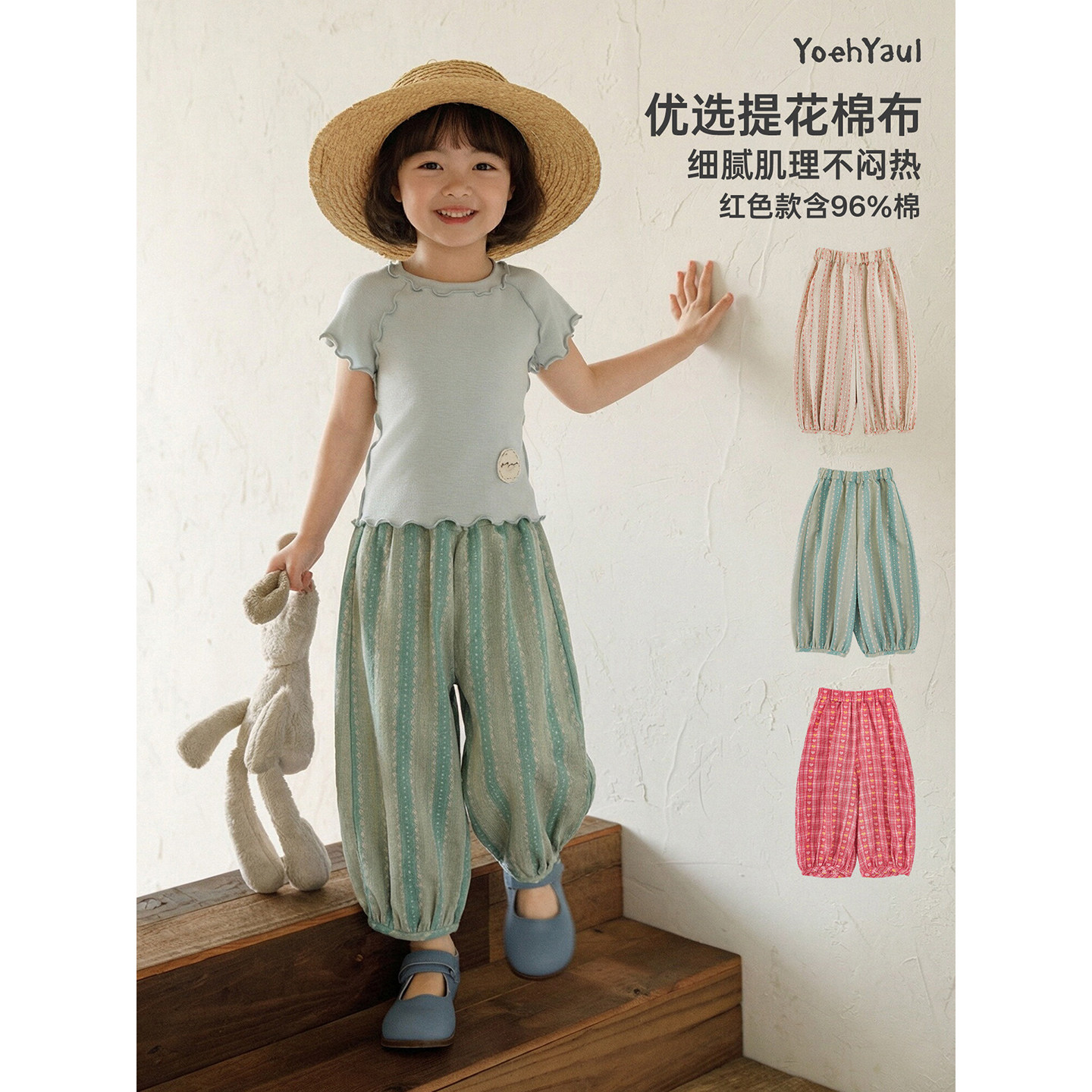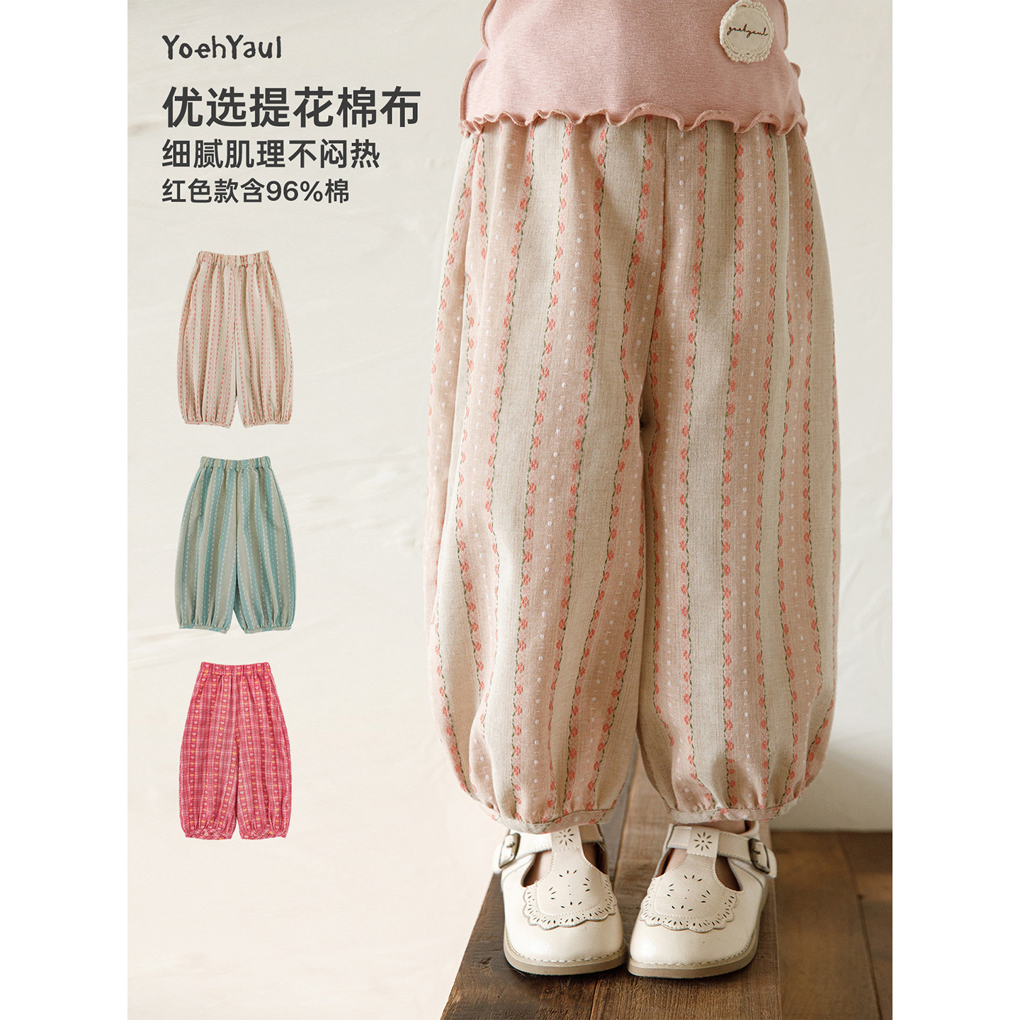 幼悠女童夏季新款提花九分宽松灯笼裤童装亲肤束脚儿童休闲防蚊裤