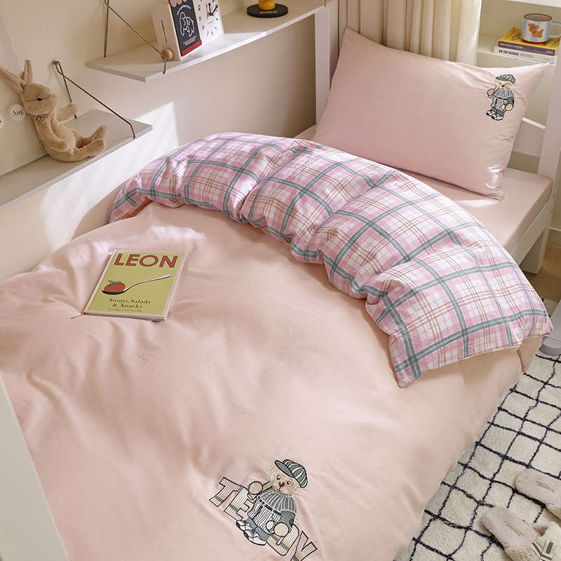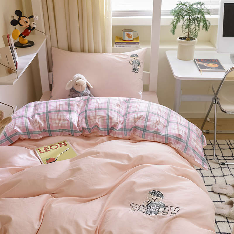全棉刺绣款学生床品套件寝室宿舍单人床用三件套透气舒适床上用品